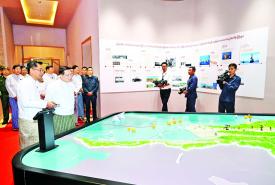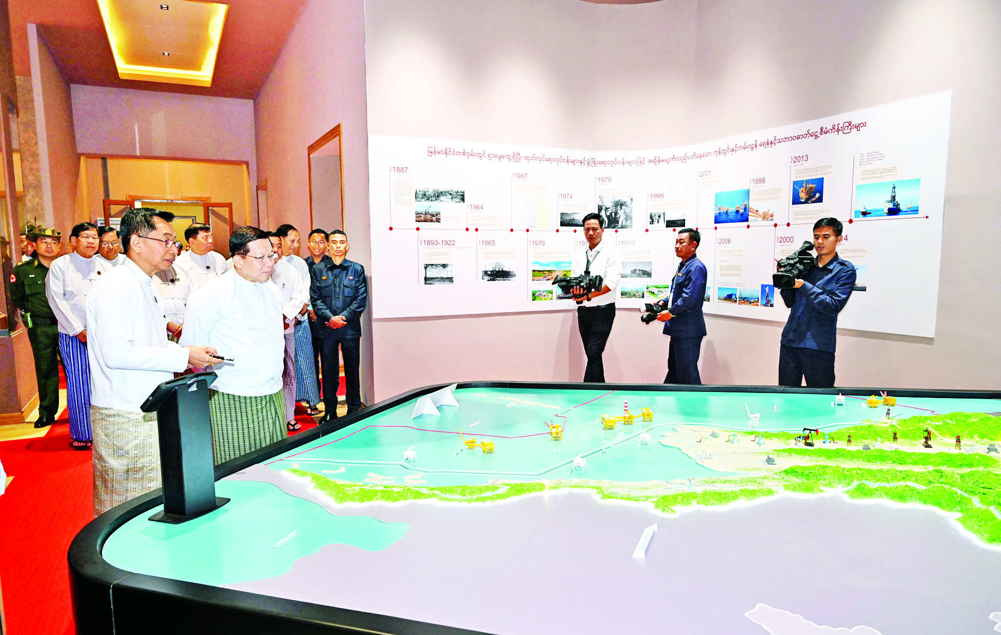 ဆက်လက်၍ နိုင်ငံတော် ယာယီသမ္မတ နိုင်ငံတော်လုံခြုံရေးနှင့် အေးချမ်းသာယာရေးကော်မရှင် ဥက္ကဋ္ဌနှင့် အဖွဲ့ဝင်များသည် စွမ်းအင်ပြတိုက်အတွင်း ခင်းကျင်းပြသထားသည့် ပြကွက်များအား ပြကွက် တစ်ခုချင်းစီအလိုက် စိတ်ပါဝင်စားစွာဖြင့် လှည့်လည်ကြည့်ရှုကြပြီး တာဝန်ရှိသူများ၏ တင်ပြချက်များအပေါ် လိုအပ်သည်များ လမ်းညွှန်မှာကြားသည်။