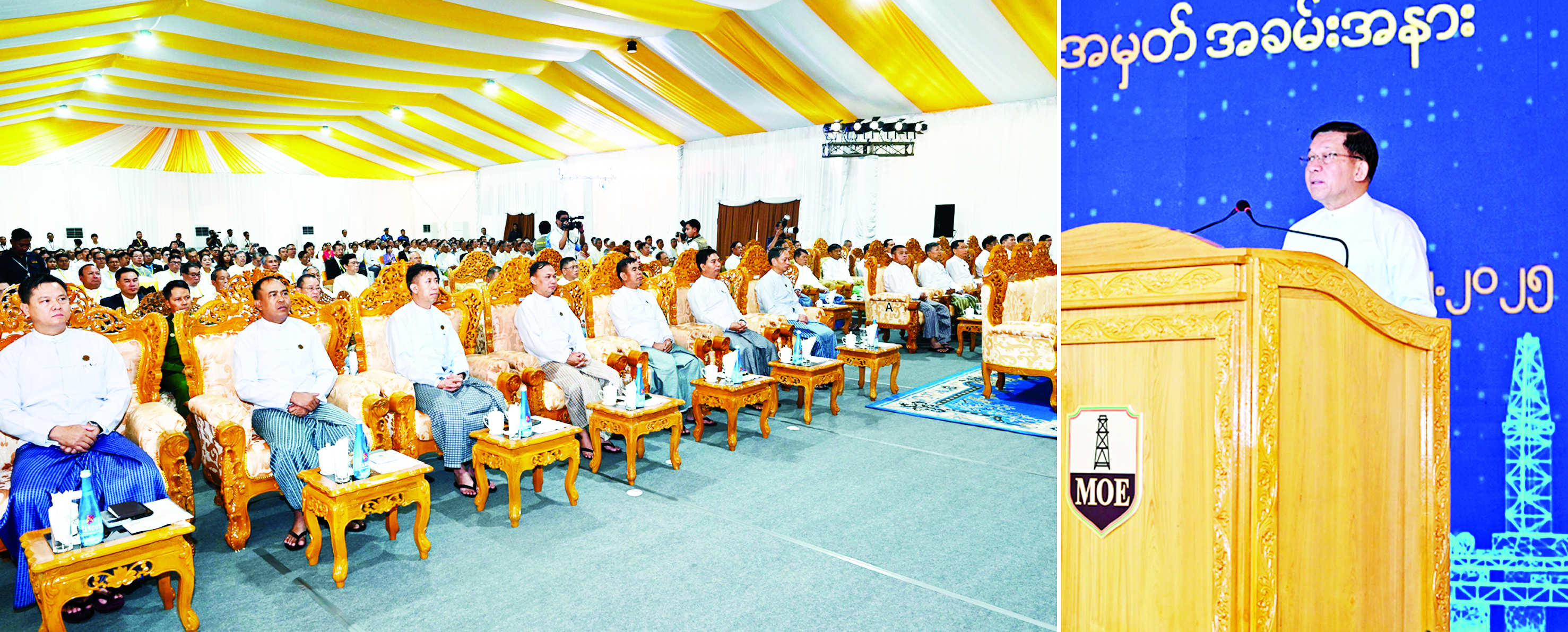 ယခုအခါ စွမ်းအင်ဝန်ကြီးဌာနအနေဖြင့် ရေနံနှင့် သဘာဝဓာတ်ငွေ့ရှာဖွေရေးတွင် AI နည်း ပညာအသုံးပြုနိုင်ရေး၊ 3D Seismic နည်းပညာ အသုံးပြုနိုင်ရေးနှင့် ရေနံချက်လုပ်ခြင်း အပိုင်းတွင်လည်း ရေနံချက်စက်ရုံအသစ်များ တည်ဆောက်ပြီး အဆင့်မြင့် စက်သုံးဆီများ ကိုယ်တိုင်ချက်လုပ် ထုတ်လုပ်နိုင်ရေး၊ ဓာတ်မြေဩဇာ စက်ရုံများ ထပ်မံတည်ဆောက်နိုင် ရေးအပါအဝင် နည်းပညာမြှင့်တင်ရေးကိစ္စရပ်များကို တိုးမြှင့်ဆောင်ရွက်နေပြီဖြစ်ကြောင်း၊ အဆိုပါ လုပ်ငန်းများကိုလည်း အောင်မြင်အောင် ဆောင်ရွက်သွားကြရန်နှင့် နိုင်ငံတော်အတွက် စွမ်းအင်ဖူလုံမှုမှသည် စွမ်းအင်အမှီအခိုကင်းရေးအထိ ရည်မှန်းချက်ထား ဆောင်ရွက်သွားကြရန် တိုက်တွန်းမှာကြားလိုကြောင်း။