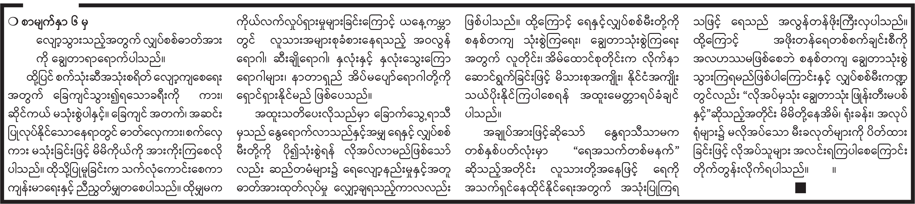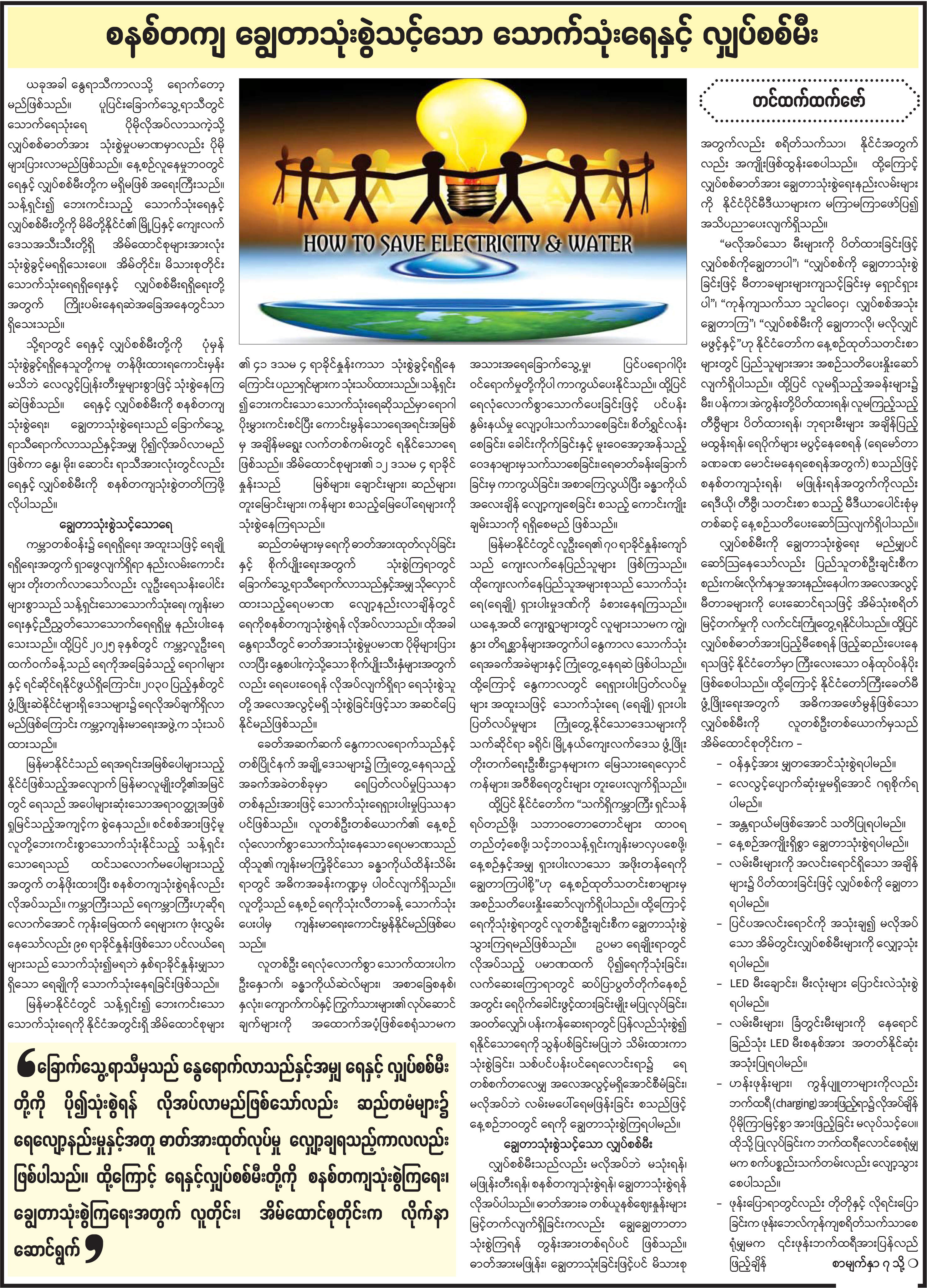 စနစ်တကျ ချွေတာသုံးစွဲသင့်သော သောက်သုံးရေနှင့် လျှပ်စစ်မီး