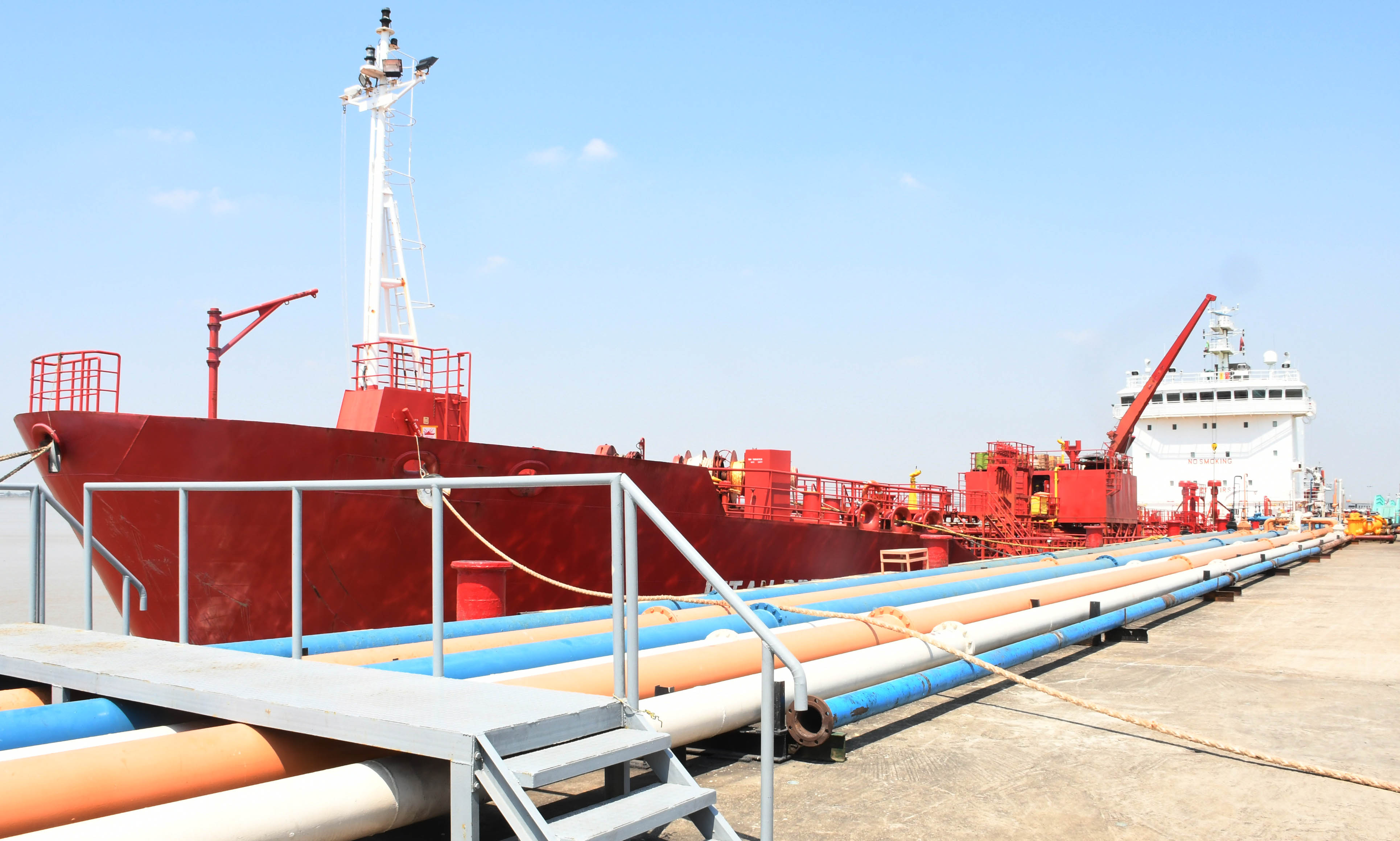 မြန်မာနိုင်ငံ၌သင်္ကြန်ကာလနှင့် သင်္ကြန်လွန်ကာလများတွင် စက်သုံးဆီသုံးစွဲသူများ အဆင်ပြေစေ ရန်အတွက် စက်သုံးဆီတင် သွင်းသိုလှောင်ဖြန့်ဖြူးခြင်း လုပ်ငန်း ကြီးကြပ်ရေးကော်မတီ၊ စွမ်းအင် ဝန်ကြီးဌာနနှင့် မြန်မာနိုင်ငံစက်သုံးဆီ တင်သွင်းရောင်းချ ဖြန့်ဖြူးရေးအသင်းတို့၏ ပူးပေါင်းစီစဉ် ဆောင်ရွက်မှုဖြင့် စင်ကာပူနိုင်ငံမှတင်သွင်း လာသည့် စက်သုံးဆီတင်သင်္ဘောကြီးများသည် ယနေ့နံနက် ပိုင်းမှစတင်၍ သီလဝါ ဆိပ်ကမ်းရှိ စက်သုံးဆီသိုလှောင်ကန်စခန်းJetty များသို့ ဆိုက်ကပ်ရောက်ရှိ လျက်ရှိရာ စွမ်းအင်ဝန်ကြီးဌာနမှတာဝန်ရှိသူများ၊ မြန်မာနိုင်ငံစက်သုံးဆီတင်သွင်းရောင်းချဖြန့်ဖြူးရေး အသင်းမှ တာဝန်ရှိသူများနှင့် မြန်မာနိုင်ငံဆိပ်ကမ်းအာဏာပိုင်မှ တာဝန်ရှိသူများက ကြည့်ရှုစစ်ဆေး ကြသည်။
