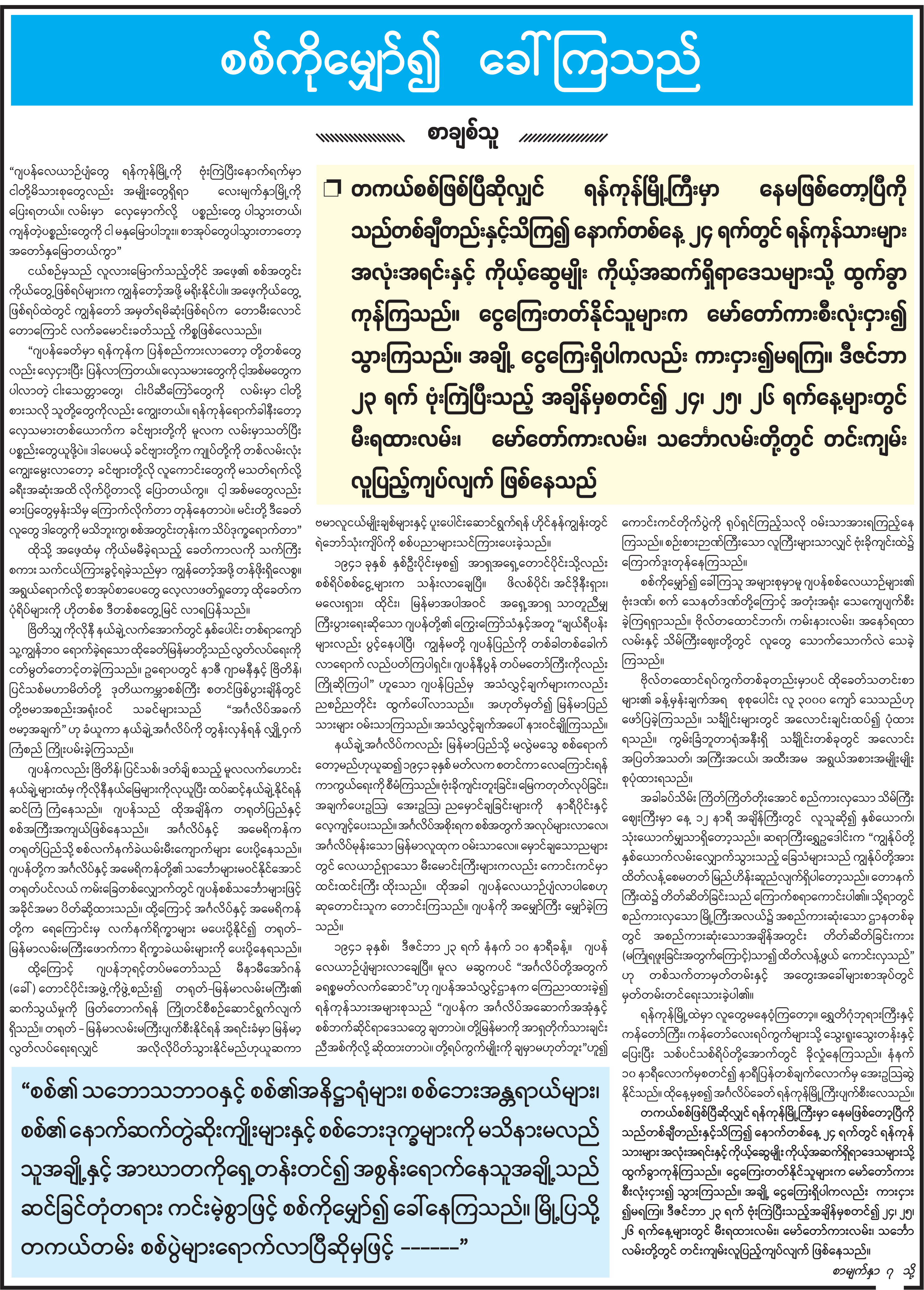 အယ်ဒီတာထံ ပေးစာ