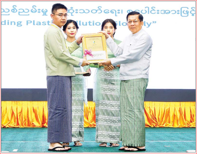 ယင်းနောက် ကုလသမဂ္ဂအထွေထွေအတွင်းရေးမှူးချုပ်၏ ၂၀၂၅ ခုနှစ် ကမ္ဘာ့ပတ်ဝန်းကျင် ထိန်းသိမ်း ရေးနေ့ သဝဏ်လွှာဗီဒီယိုနှင့် ကုလသမဂ္ဂ ပတ်ဝန်းကျင်အစီအစဉ် (UNEP) ၏ အမှုဆောင် ညွှန်ကြားရေးမှူး၏ ၂၀၂၅ ခုနှစ် ကမ္ဘာ့ပတ်ဝန်းကျင် ထိန်းသိမ်းရေးနေ့သဝဏ်လွှာဗီဒီယိုကို ပြသသည်။ ထို့နောက် နိုင်ငံတော်စီမံအုပ်ချုပ်ရေးကောင်စီ ဥက္ကဋ္ဌ နိုင်ငံတော်ဝန်ကြီးချုပ်က ပတ်ဝန်းကျင်စီမံ ခန့်ခွဲမှုကောင်းမွန်သောမြို့ ဆုရရှိသည့် ရှမ်းပြည်နယ် (အရှေ့ပိုင်း) ကျိုင်းတုံမြို့မှ တာဝန်ရှိသူထံလည်း ကောင်း၊ ပတ်ဝန်းကျင်စီမံခန့်ခွဲမှုကောင်းမွန်သော ကျေးရွာဆုရရှိသည့် မန္တလေးတိုင်းဒေသကြီး ညောင်ဦးမြို့ နယ် မြင်းကပါကျေးရွာမှ တာဝန်ရှိသူထံ လည်းကောင်း၊ ပတ်ဝန်းကျင်စီမံခန့်ခွဲမှု ကောင်းမွန် သော စက်ရုံဆုရရှိသည့် မန္တလေးတိုင်းဒေသကြီး သာစည်မြို့နယ်ရှိ Great Success Energy Co.,Ltd. (၃၀ မဂ္ဂါဝပ် နေရောင်ခြည်စွမ်းအင်သုံးလျှပ်စစ် ဓာတ်အားထုတ်လုပ်ခြင်းလုပ်ငန်း) မှ တာဝန်ရှိသူ ထံလည်းကောင်း ဆုများ ပေးအပ်ချီးမြှင့်သည်။