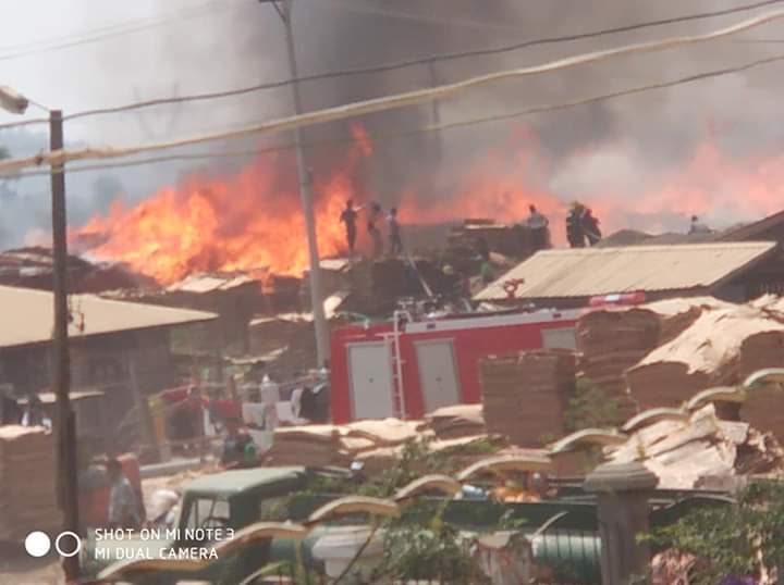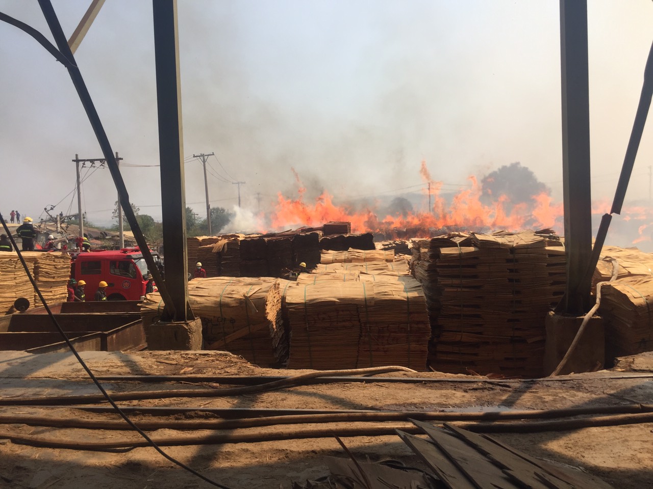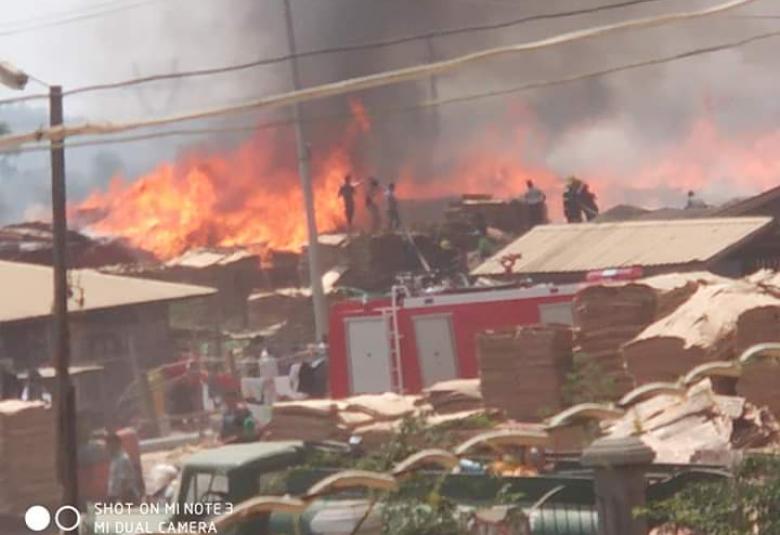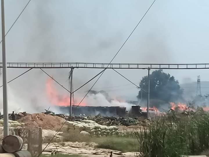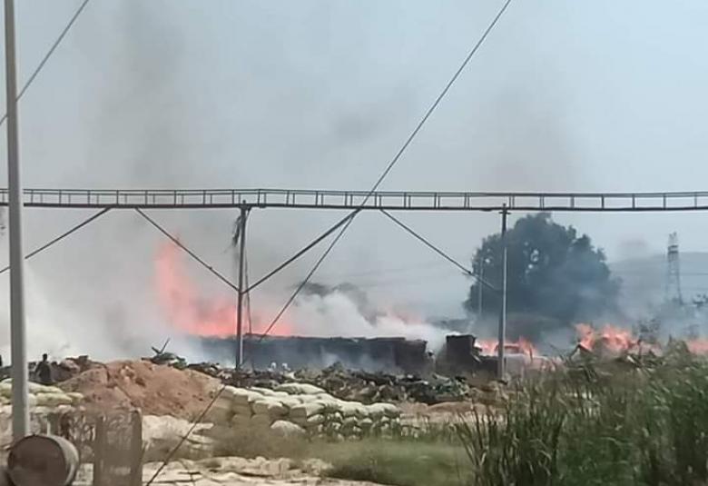 စက်ရုံဝန်းအတွင်း အချိန်ကြာမြင့်စွာ စွန့်ပစ်ထားသော စွန့်ပစ်ပစ္စည်းပုံနှင့်အတူ အထပ်သားပြုလုပ်သည့် ကုန်ကြမ်းပစ္စည်းများ မီးလောင်မှုဖြစ်ပွားခဲ့သည်။