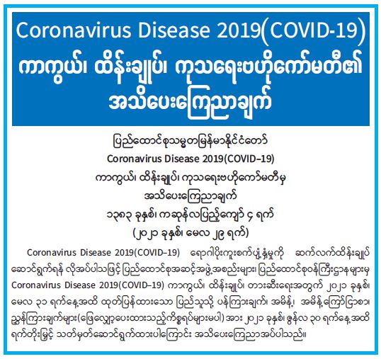 Coronavirus Disease 2016(COVID-19) ကာကွယ်၊ ထိန်းချုပ်၊ ကုသရေးဗဟိုကော်မတီ၏ အသိပေးကြေညာချက်