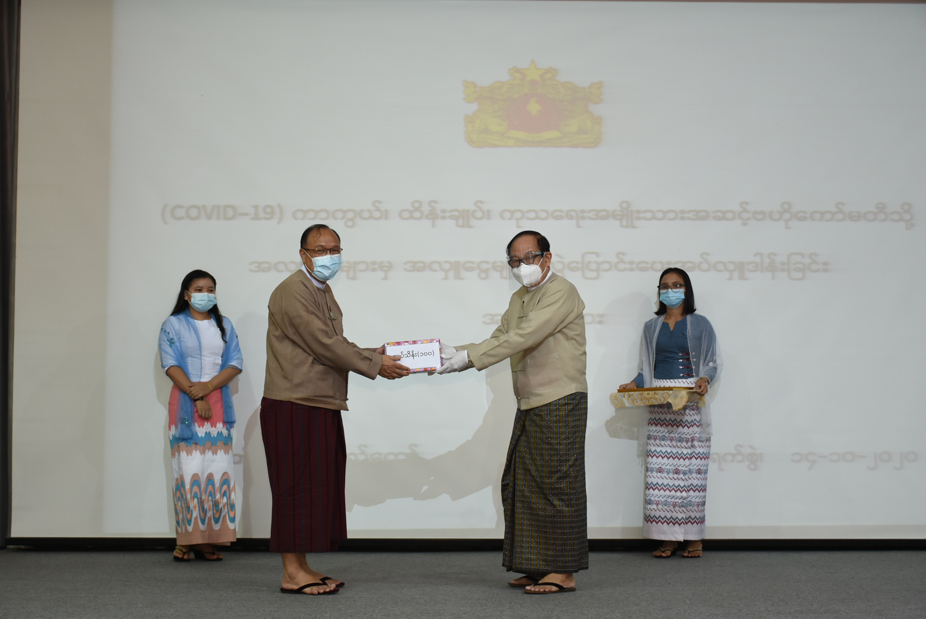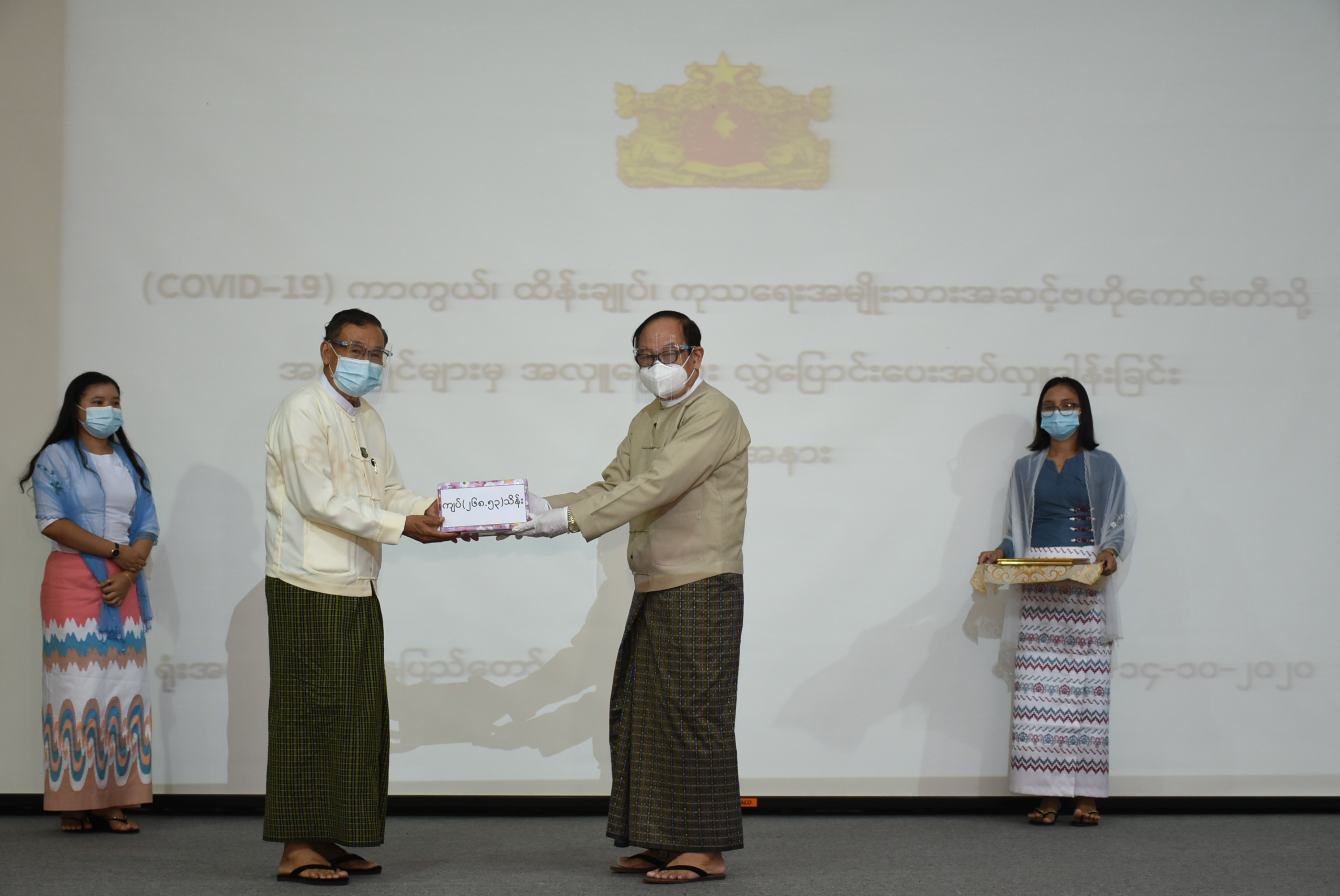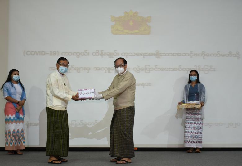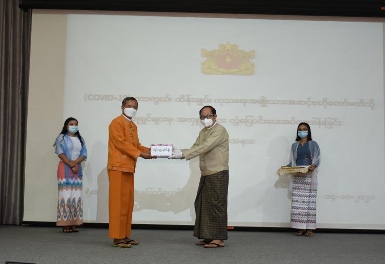 Coronavirus Disease 2019 (COVID-19) ကာကွယ်၊ ထိန်းချုပ်၊ ကုသရေး အမျိုးသားအဆင့် ဗဟိုကော်မတီသို့ အလှူငွေပေးအပ်ပွဲကို ယနေ့မွန်းလွဲပိုင်းတွင် နေပြည်တော်ရှိ ကျန်းမာရေးနှင့် အားကစားဝန်ကြီးဌာန၌ ကျင်းပသည်။