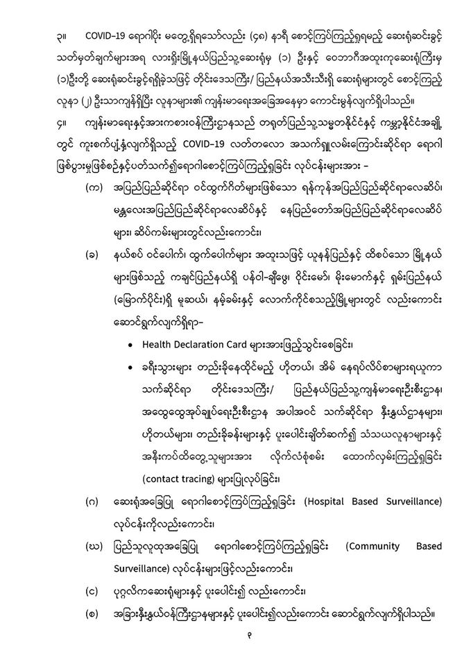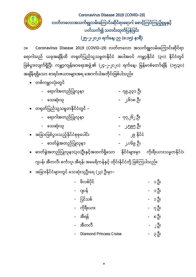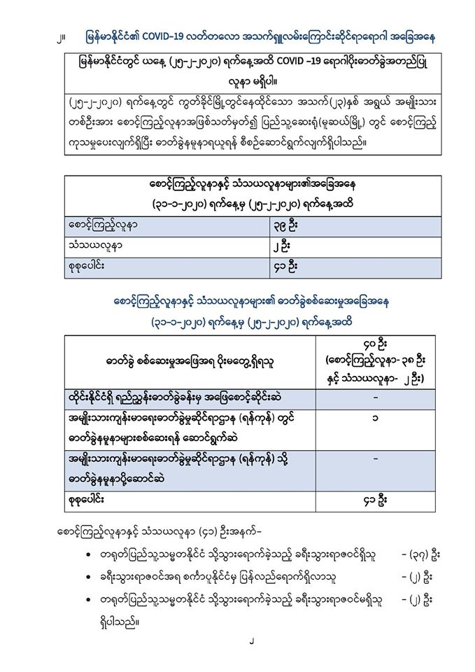 Coronavirus Disease 2019 (COVID-19) လတ်တလောအသက်ရှူလမ်းကြောင်းဆိုင်ရာရောဂါ စောင့်ကြပ်ကြည့်ရှုမှုနှင့် ပတ်သက်၍ သတင်းထုတ်ပြန်ခြင်း