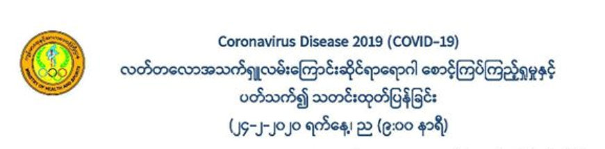 Coronavirus Disease 2019 (COVID-19) လတ်တလောအသက်ရှူလမ်းကြောင်းဆိုင်ရာရောဂါ စောင့်ကြပ်ကြည့်ရှုမှုနှင့် ပတ်သက်၍ သတင်းထုတ်ပြန်ခြင်း