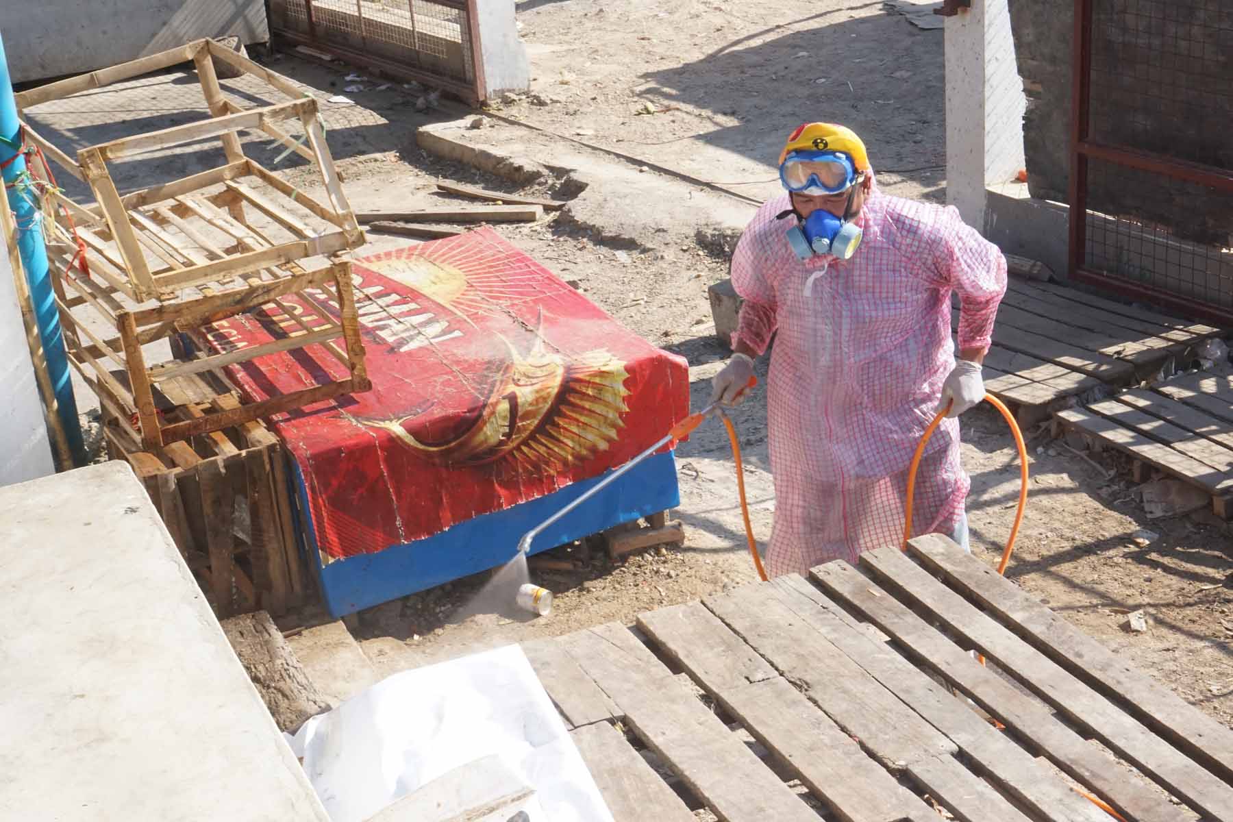 တနင်္သာရီတိုင်းဒေသကြီး၊ ထားဝယ်မြို့ ကမ်းနားစျေးတွင် ယနေ့ မွန်းလွဲပိုင်းက COVID-19 ရောဂါ ကြိုတင် ကာကွယ်ရေးအတွက် ကလိုရင်းပိုးသတ်ဆေးများ လိုက်လံဖျန်းပေးလျက်ရှိသည်။