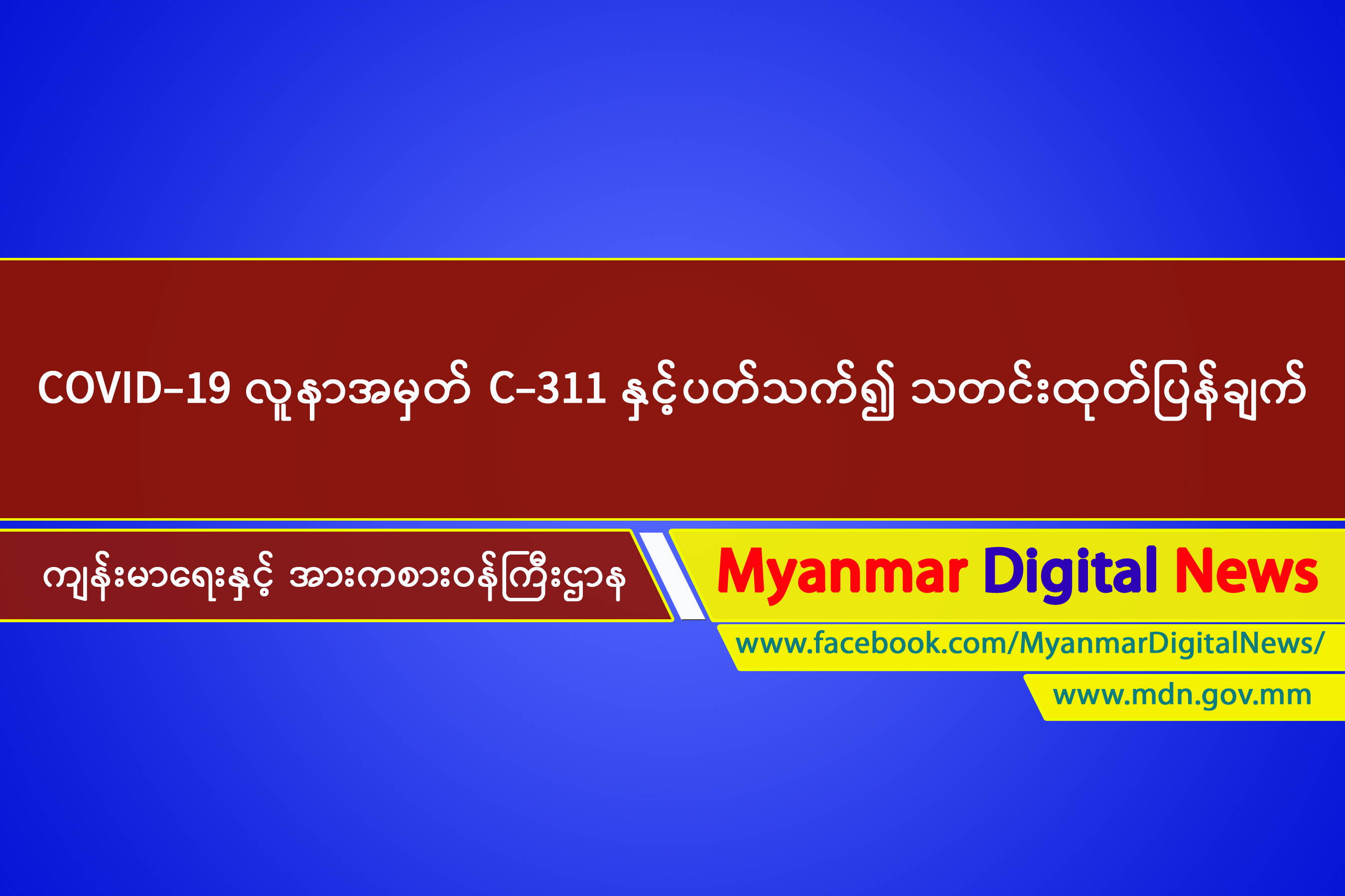 ထိုသူ (C-311) ထံမှ ဓာတ်ခွဲနမူနာ ရယူ၍ အမျိုးသားကျန်းမာရေး ဓာတ်ခွဲမှု ဆိုင်ရာဌာန (ရန်ကုန်) သို့ ပေးပို့စစ်ဆေးခဲ့ရာ (၄-၇-၂၀၂၀) ရက်နေ့ ဓာတ်ခွဲအဖြေတွင် COVID-19 ရောဂါပိုးတွေ့ရှိရသဖြင့် တောင်ဥက္ကလာပ အထူးကုဆေးရုံတွင် သီးခြားထားရှိ၍ ဆေးဝါး ကုသမှု လုပ်ငန်းများ ဆောင်ရွက်ပေးလျက်ရှိပါသည်။ ယနေ့နံနက် စစ်ဆေးချက်များအရ လူနာ၏ ကျန်းမာရေး အခြေအနေသည် ကောင်းမွန်ပါသည်။