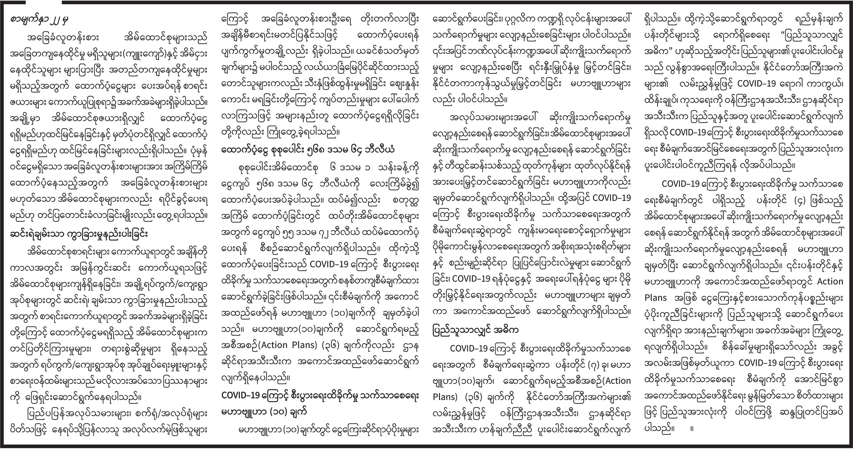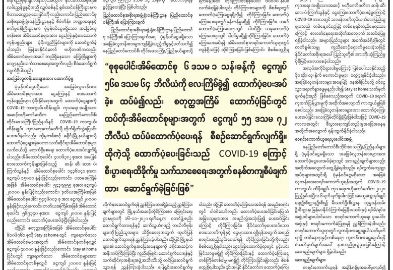 COVID-19 နှင့် အခြေခံလူတန်းစားများအား ထောက်ပံ့မှု