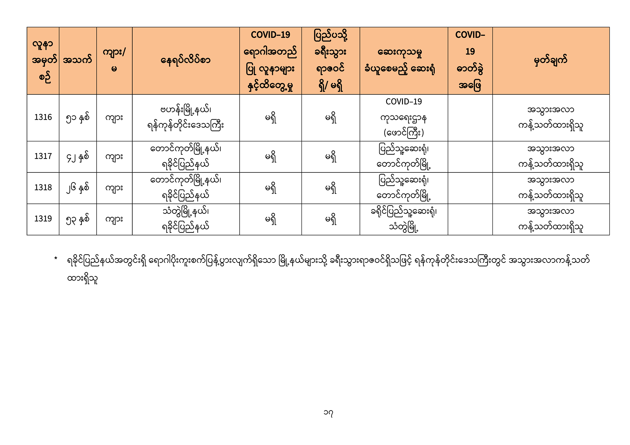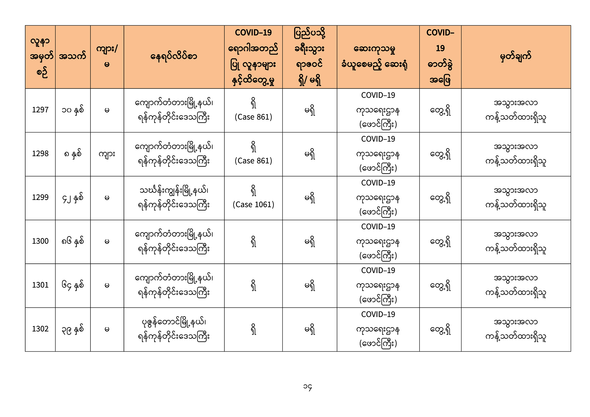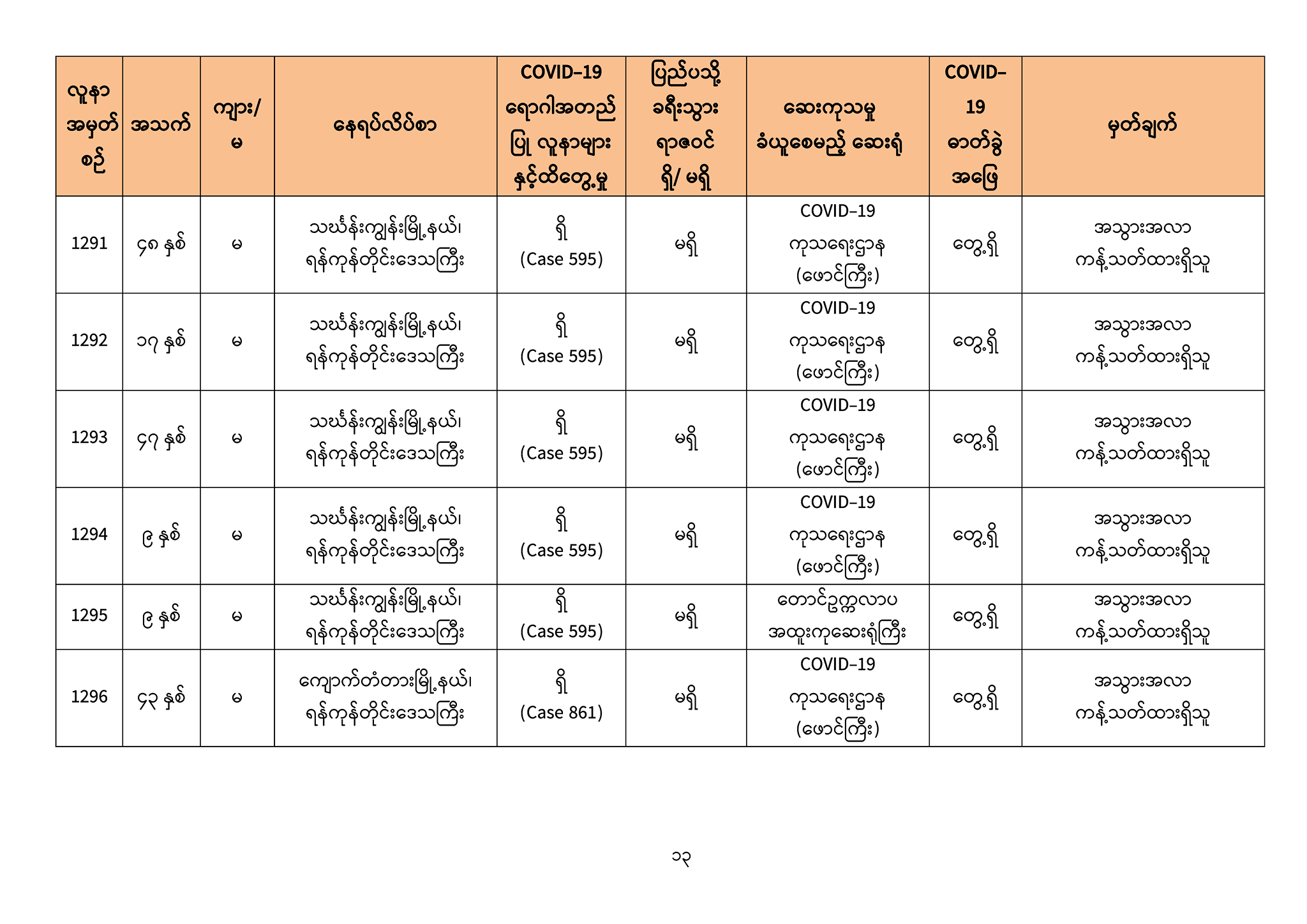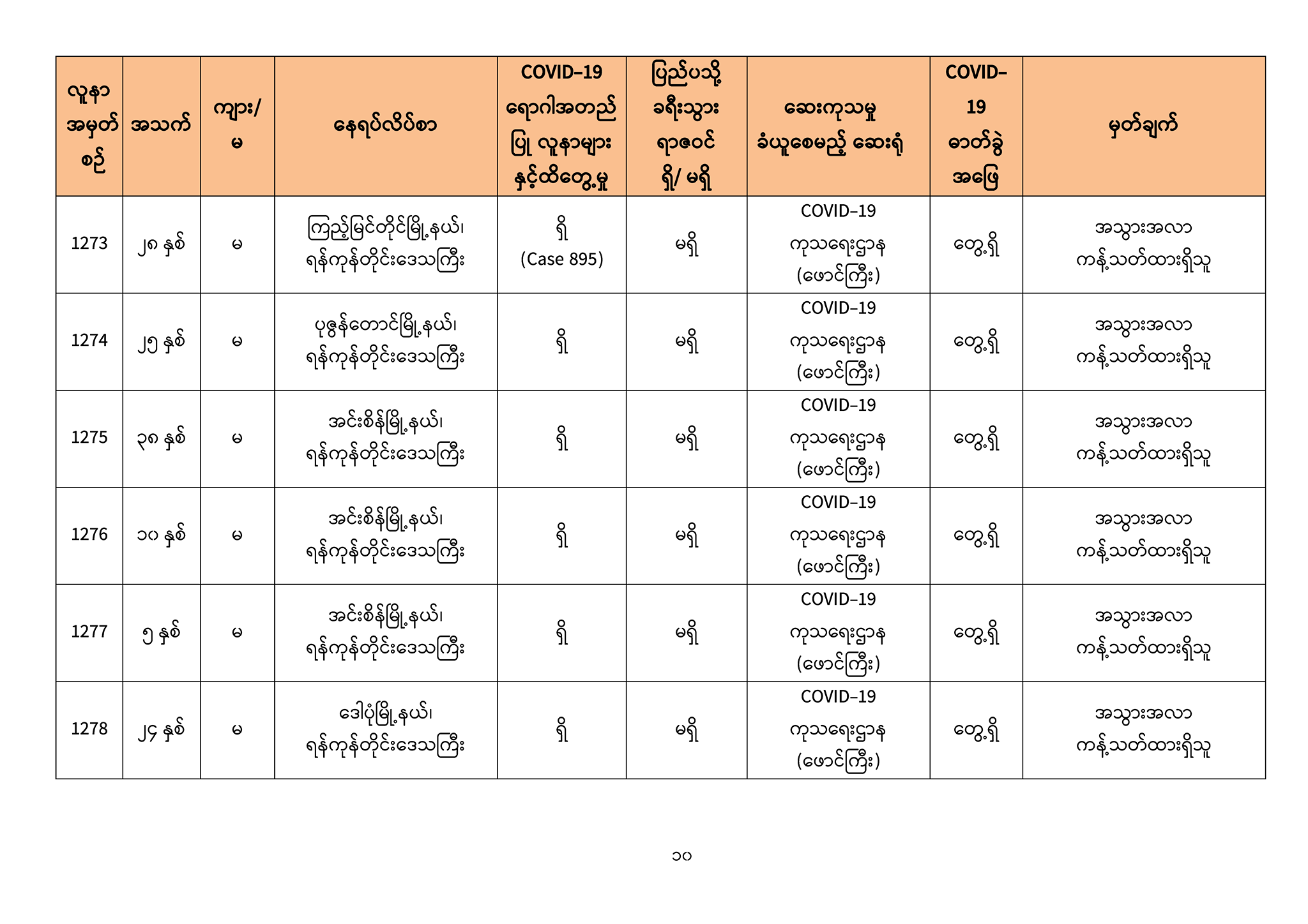 ၃။ ဓာတ်ခွဲအတည်ပြုလူနာသစ်များ၏ သတင်းအချက်အလက်များကို ပူးတွဲပါဇယားများဖြင့် ဖော်ပြအပ်ပါသည်။