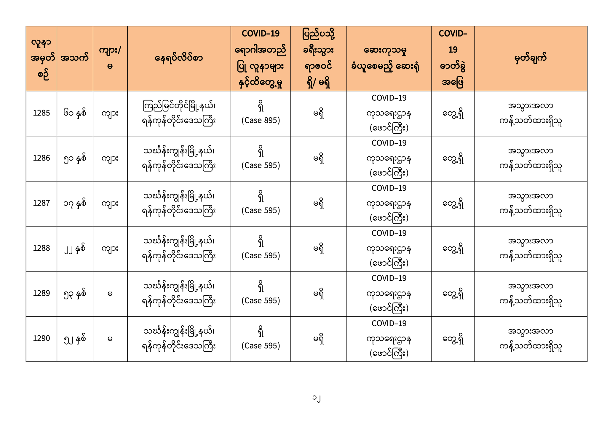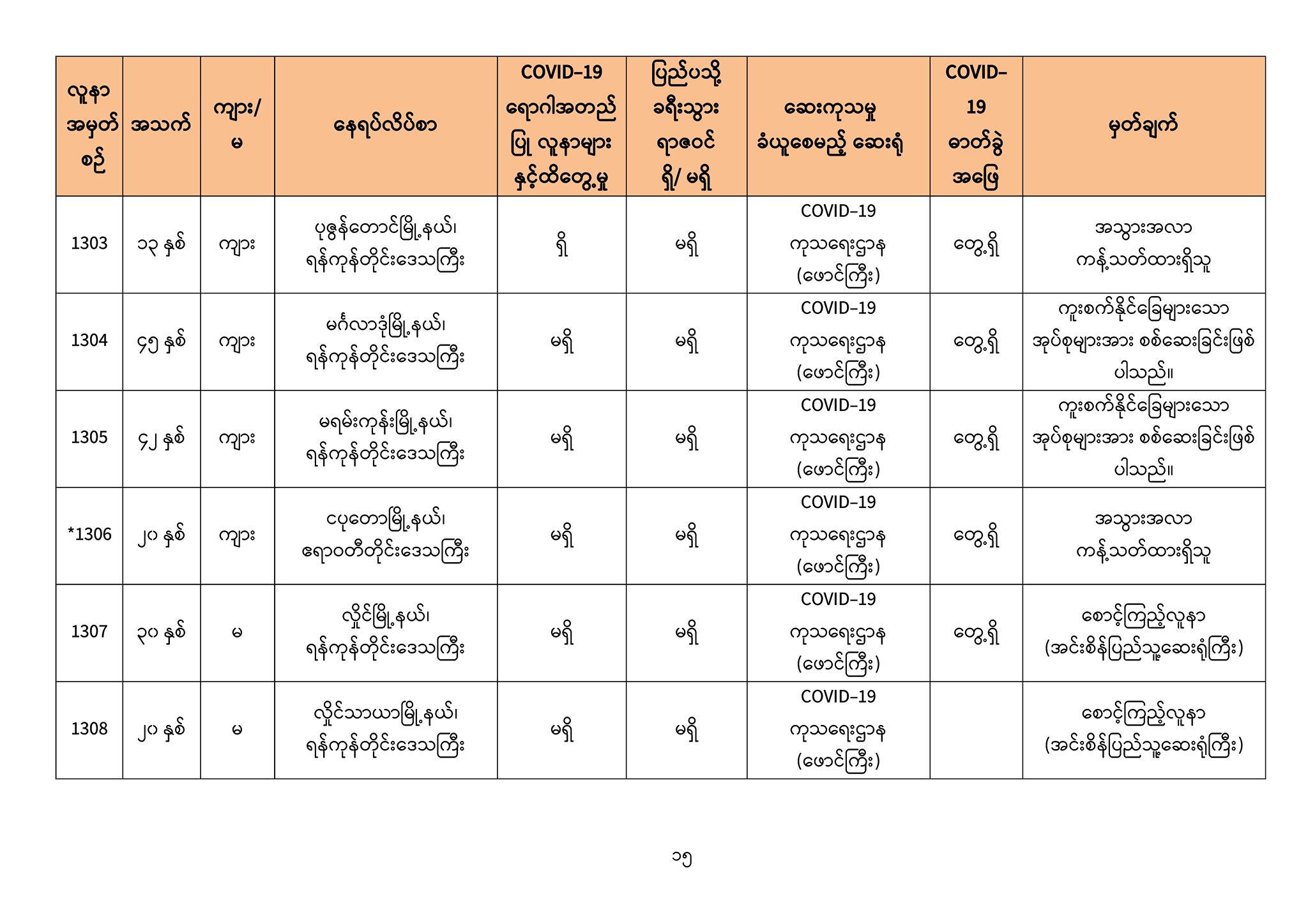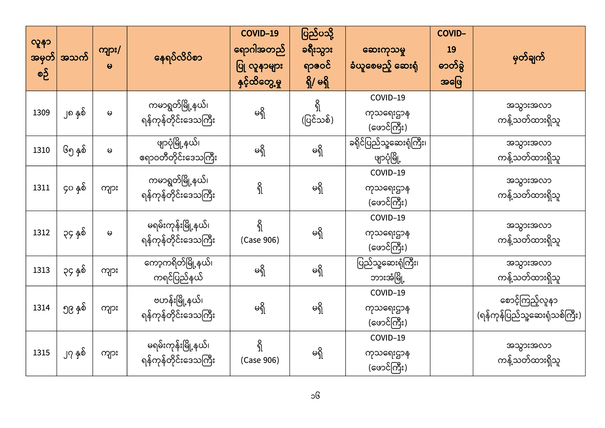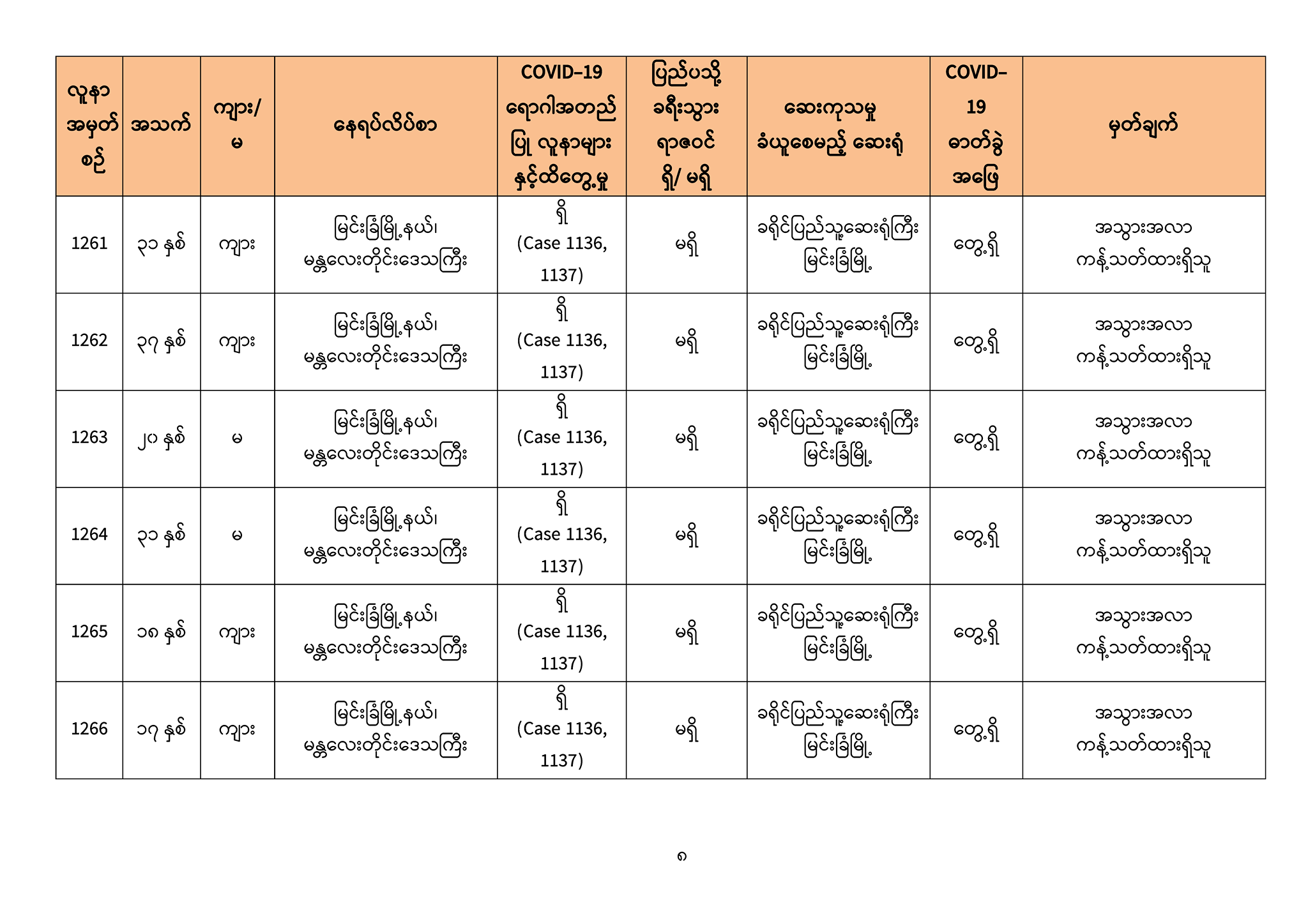 ၁။ (၅-၉ -၂၀၂၀) ရက်နေ့အတွက် COVID-19 ရောဂါ ဓာတ်ခွဲစစ်ဆေးရာတွင် -