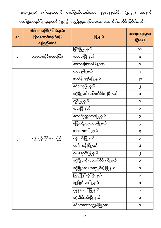- စုစုပေါင်း (၂,၂၃၅)ခု အား ယနေ့၊ ညနေတွင် စစ်ဆေးပြီးစီးခဲ့ရာ -