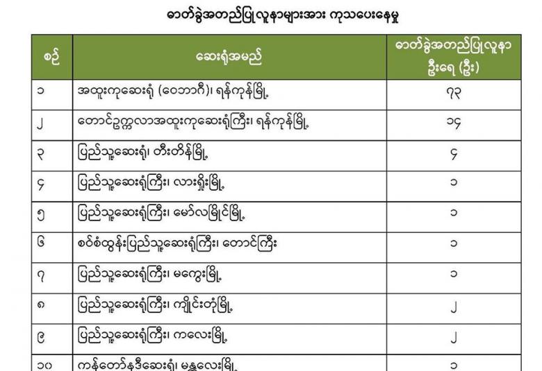၂။ အဆိုပါလူနာ (၁) ဦးကို သက်ဆိုင်ရာဆေးရုံသို့ လွှဲပြောင်း၍ သီးခြားထားရှိကုသမှုပေး သွားမည်ဖြစ်ပါသည်။