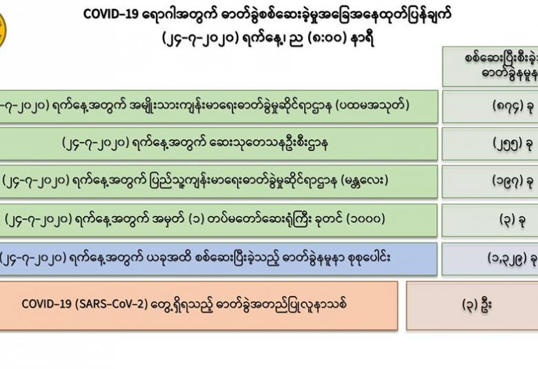 ၁။ (၂၄-၇-၂၀၂၀) ရက်နေ့အတွက် COVID-19 ရောဂါ ဓာတ်ခွဲစစ်ဆေးရာတွင် -