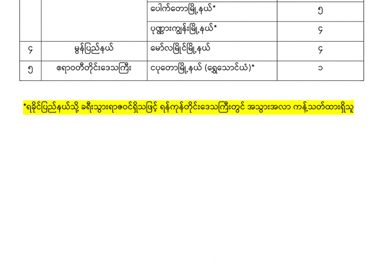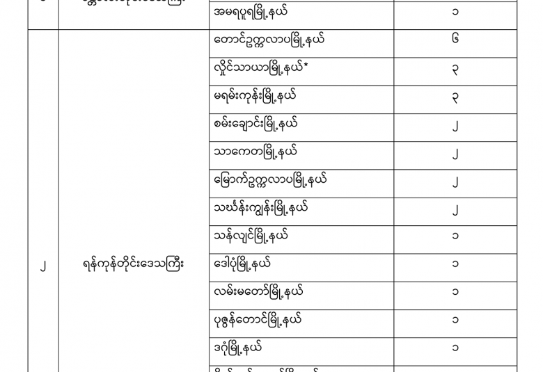 - ရန်ကုန်မြို့၊ အမှတ်(၁) တပ်မတော်ဆေးရုံကြီး (ခုတင်-၁၀၀၀) မှ ဓာတ်ခွဲနမူနာ (၉၆) ခု