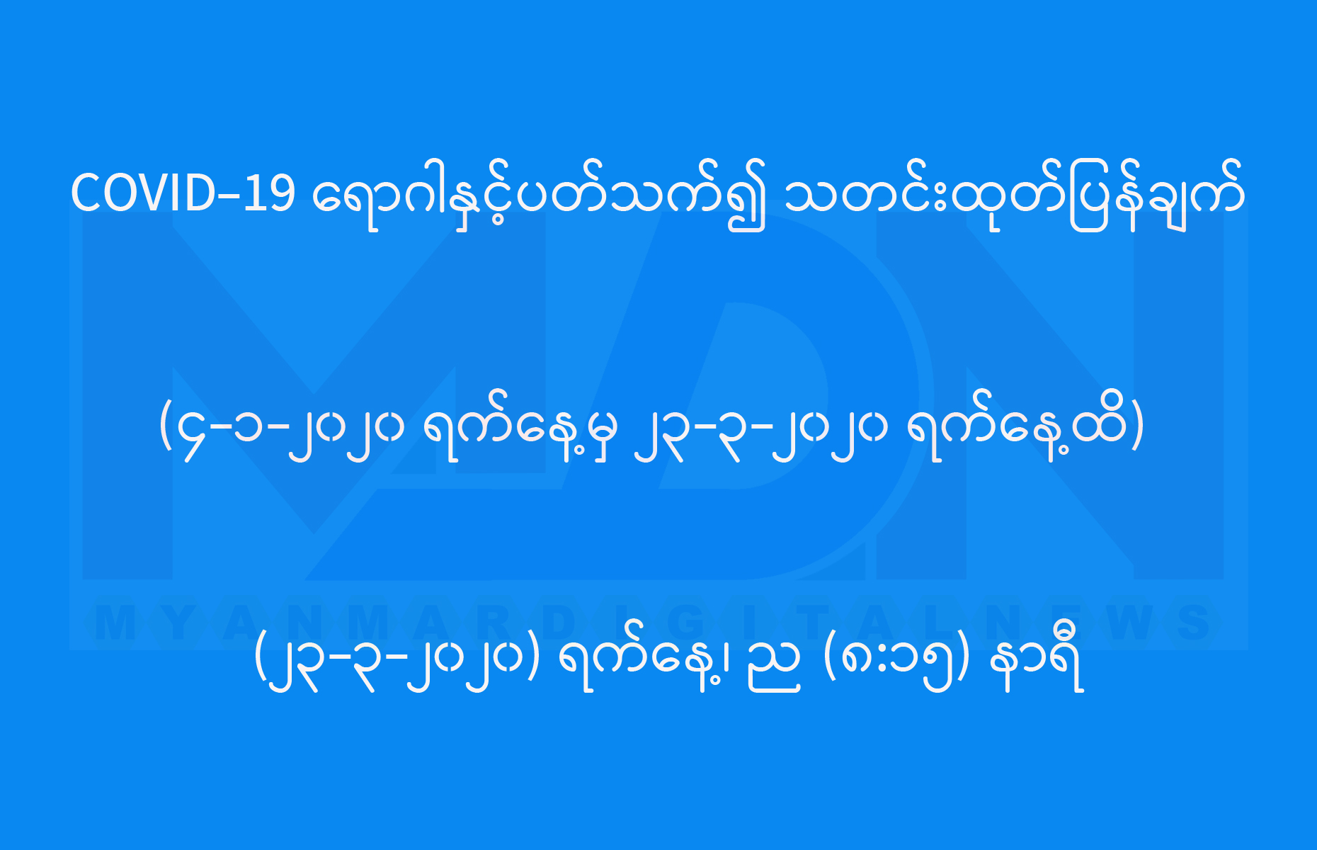 Mar 23,2020 |08:20 | (၄-၁-၂၀၂၀ ရက်နေ့မှ ၂၃-၃-၂၀၂၀ ရက်နေ့ထိ) (၂၃-၃-၂၀၂၀) ရက်နေ့၊ ည (၈:၁၅) နာရီ Crd. Ministry of Health and Sports, Myanmar