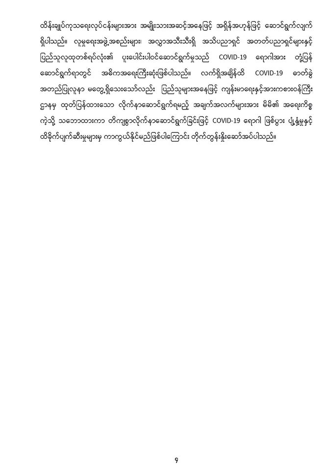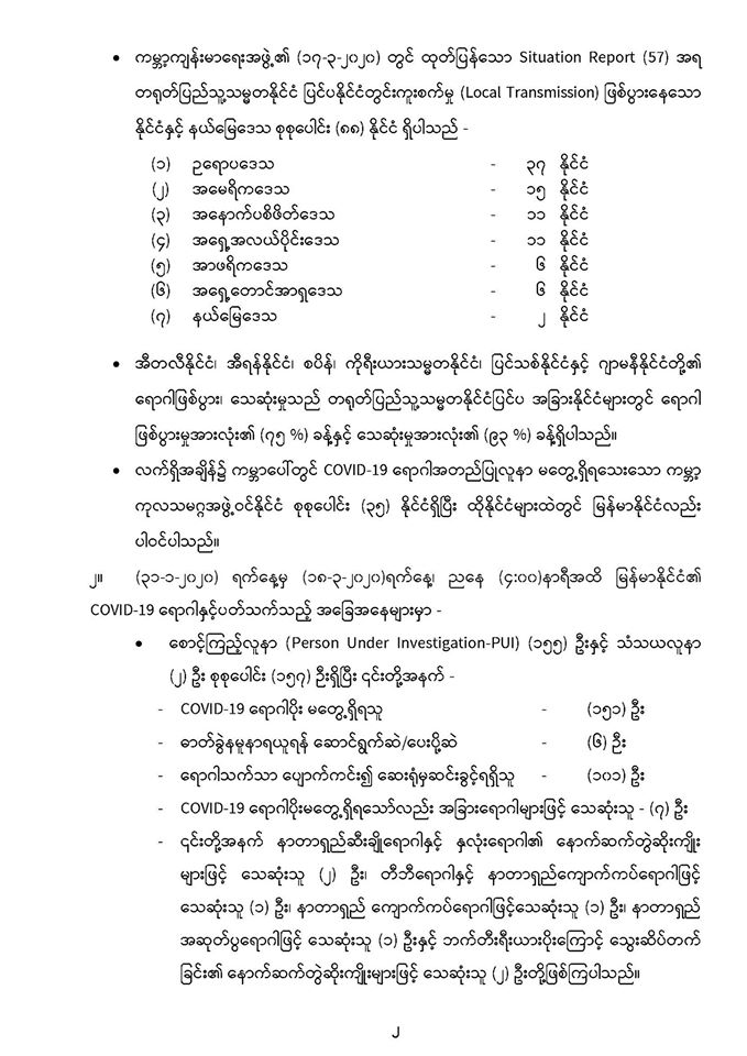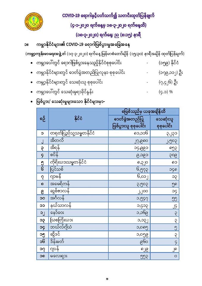 COVID-19 ရောဂါနှင့်ပတ်သက်၍ သတင်းထုတ်ပြန်ချက် (၄-၁-၂၀၂၀ ရက်နေ့မှ ၁၈-၃-၂၀၂၀ ရက်နေ့ထိ) (၁၈-၃-၂၀၂၀) ရက်နေ့၊ ည (၈:၁၅) နာရီ