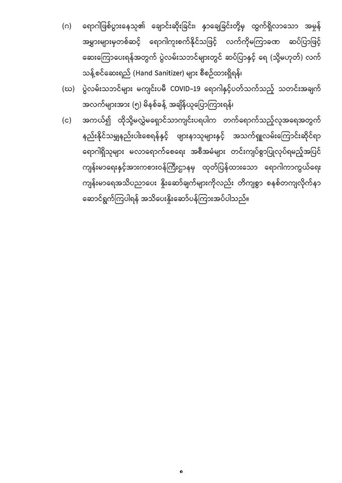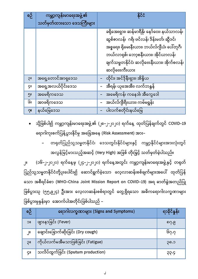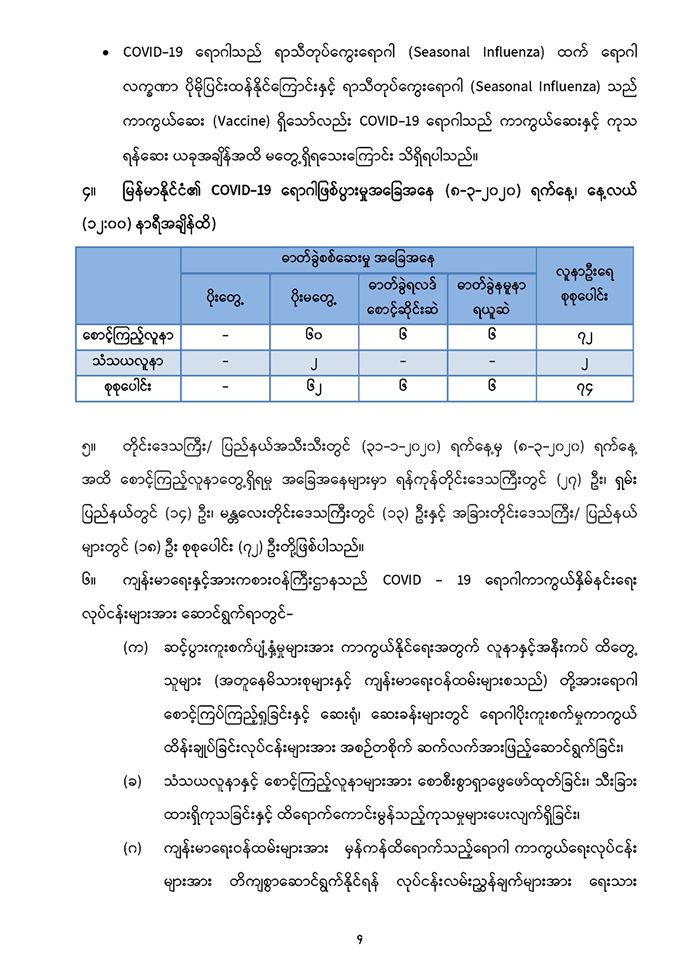 COVID-19 ရောဂါနှင့်ပတ်သက်၍ သတင်းထုတ်ပြန်ချက် (၄-၁-၂၀၂၀ ရက်နေ့မှ ၈-၃-၂၀၂၀ ရက်နေ့ထိ) (၈-၃-၂၀၂၀) ရက်နေ့၊ ည (၈:၁၅) နာရီ