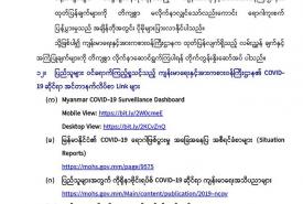 (ခ) မြန်မာနိုင်ငံ၏ COVID-19 ရောဂါဖြစ်ပွားမှု အခြေအနေပြ အစီရင်ခံစာများ (Situation Reports) https://mohs.gov.mm/page/9575