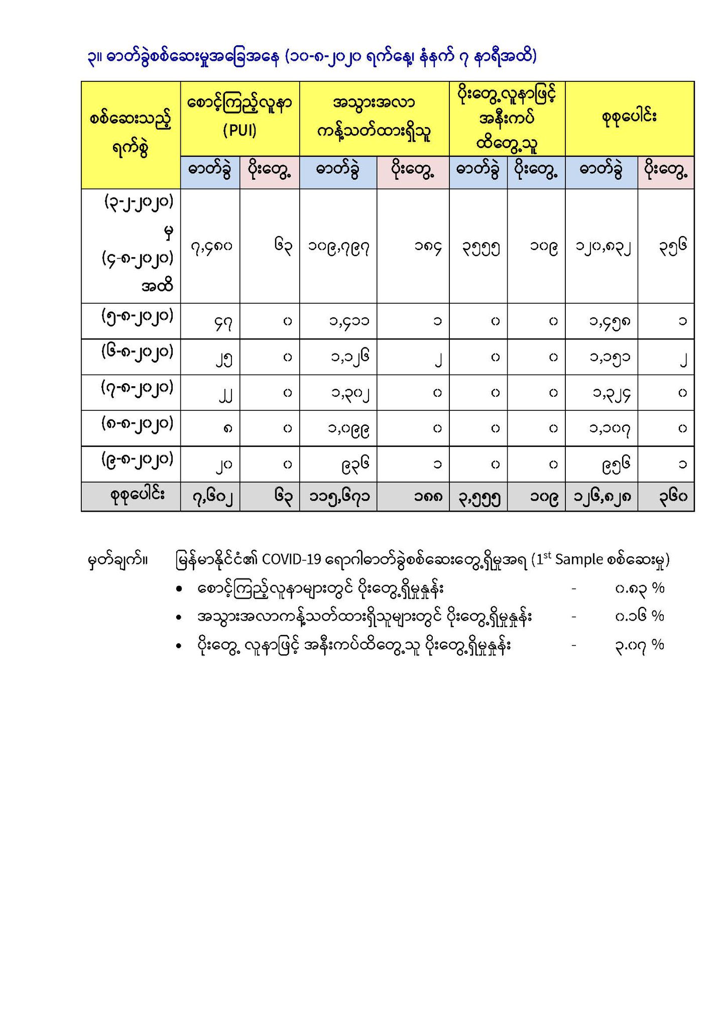 (ခ) မြန်မာနိုင်ငံ၏ COVID-19 ရောဂါဖြစ်ပွားမှု အခြေအနေပြ အစီရင်ခံစာများ (Situation Reports) https://mohs.gov.mm/page/9575