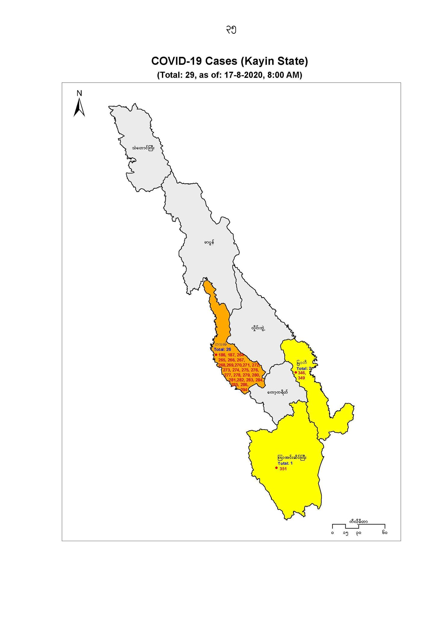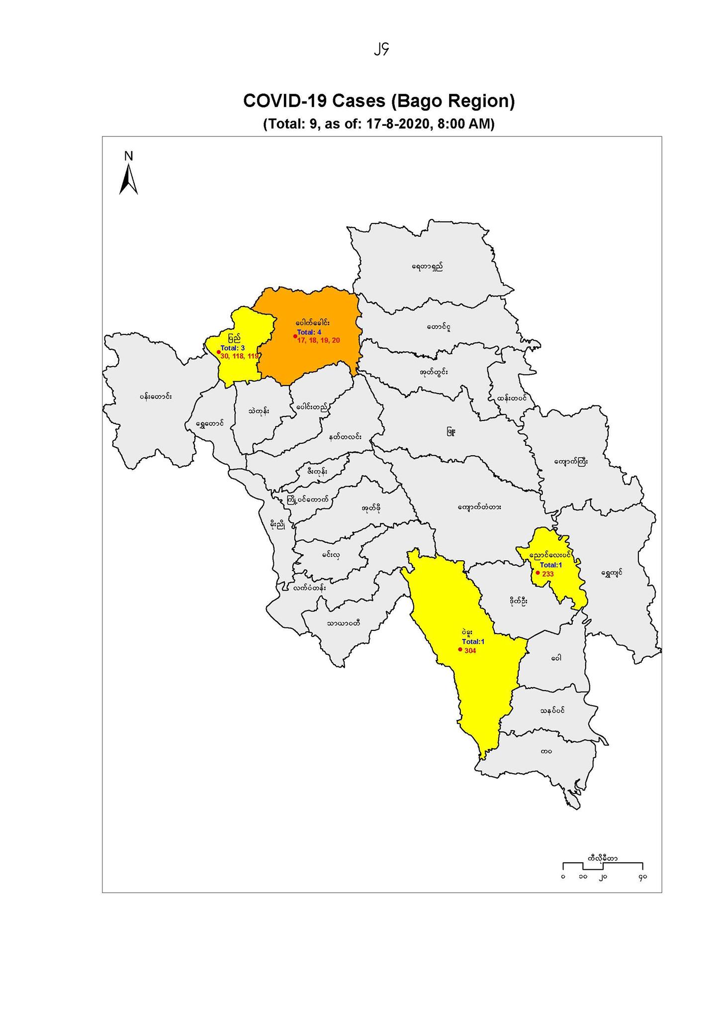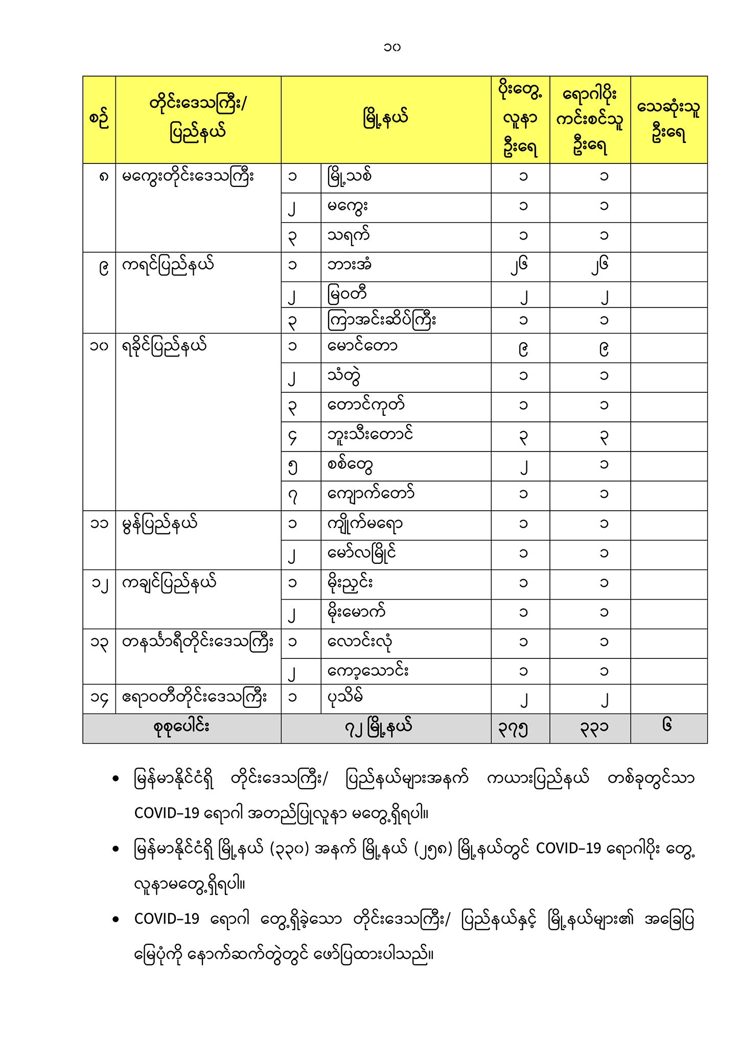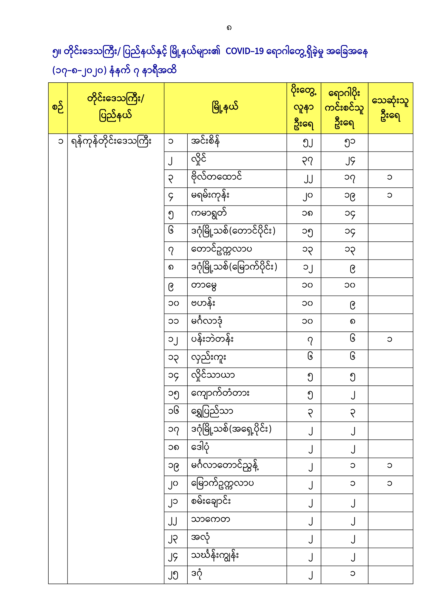 ၅။ တိုင်းဒေသကြီး/ ပြည်နယ်နှင့် မြို့နယ်များ၏ COVID-19 ရောဂါတွေ့ရှိခဲ့မှု အခြေအနေ