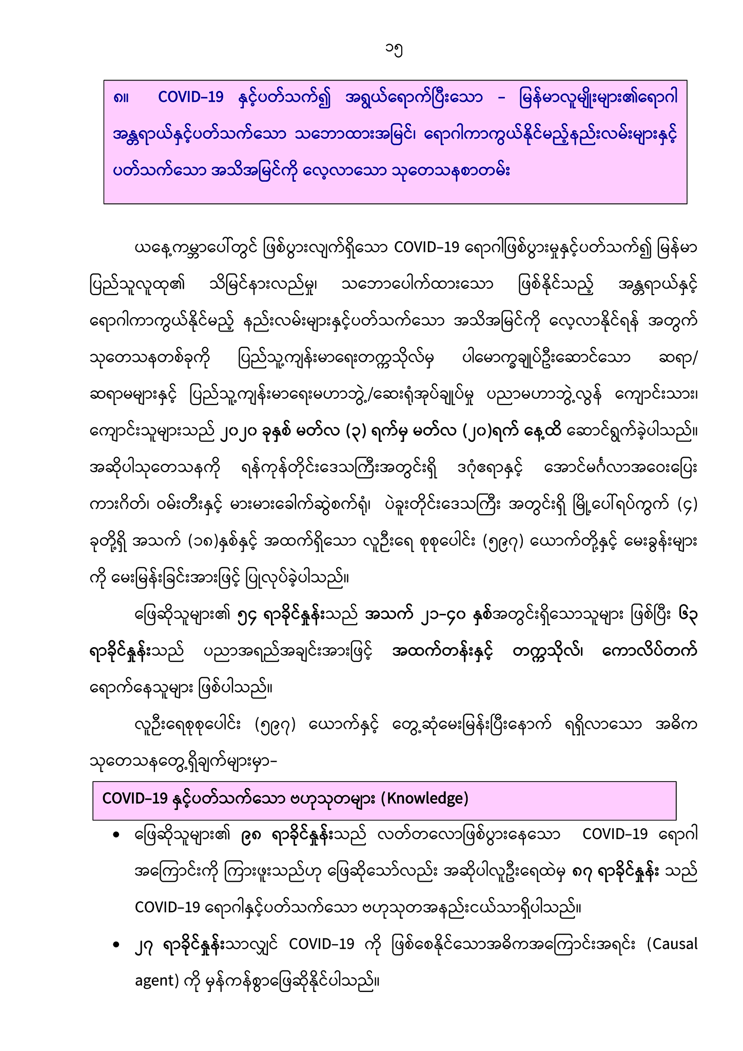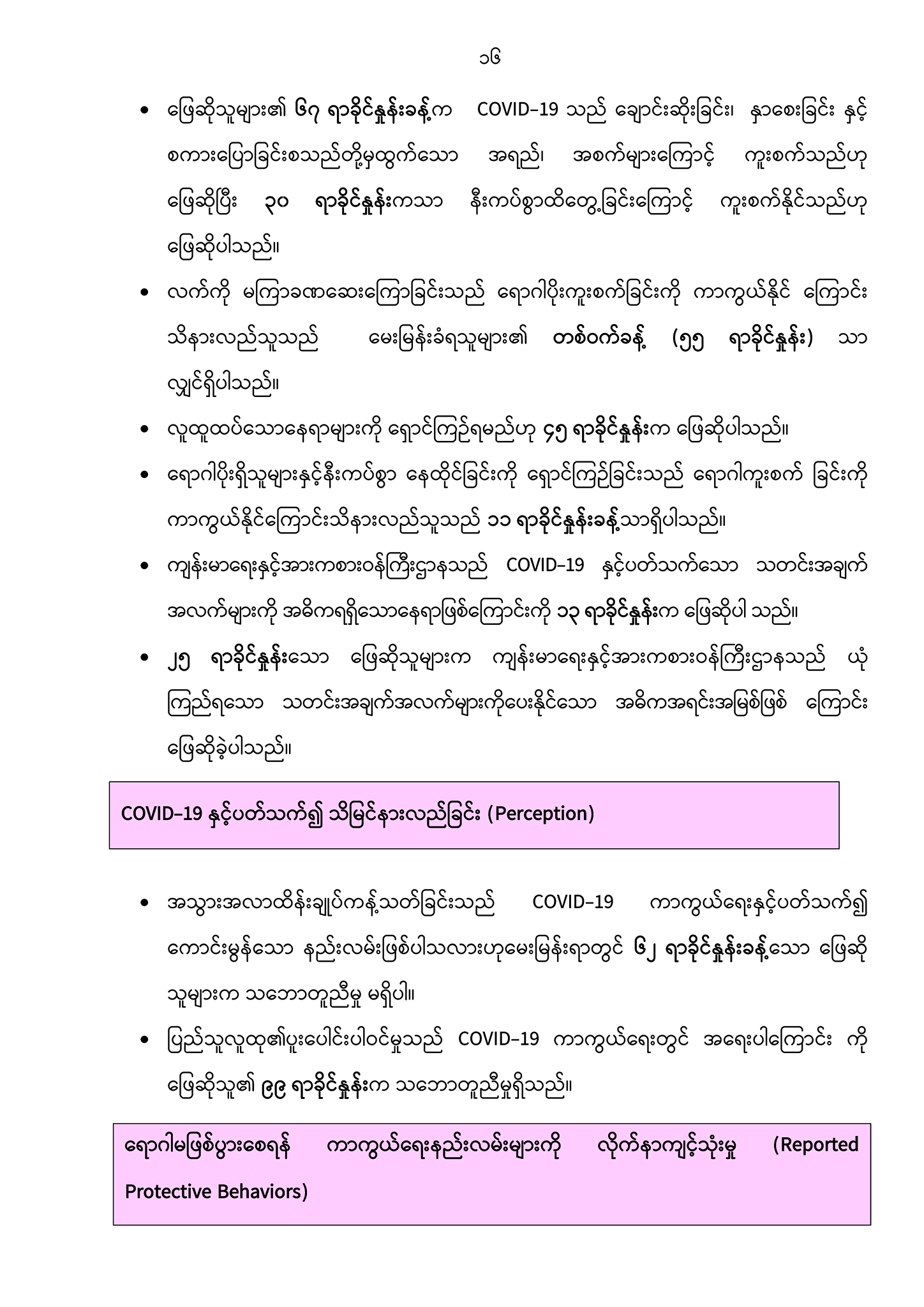 ၈။ COVID-19 နှင့်ပတ်သက်၍ အရွယ်ရောက်ပြီးသော မြန်မာလူမျိုးများ၏ ရောဂါအန္တရာယ်နှင့် ပတ်သက်သော သဘောထားအမြင်၊ ရောဂါကာကွယ်နိုင်မည့် နည်းလမ်းများနှင့် ပတ်သက်သော အသိအမြင်ကို လေ့လာသော သုတေသနစာတမ်း