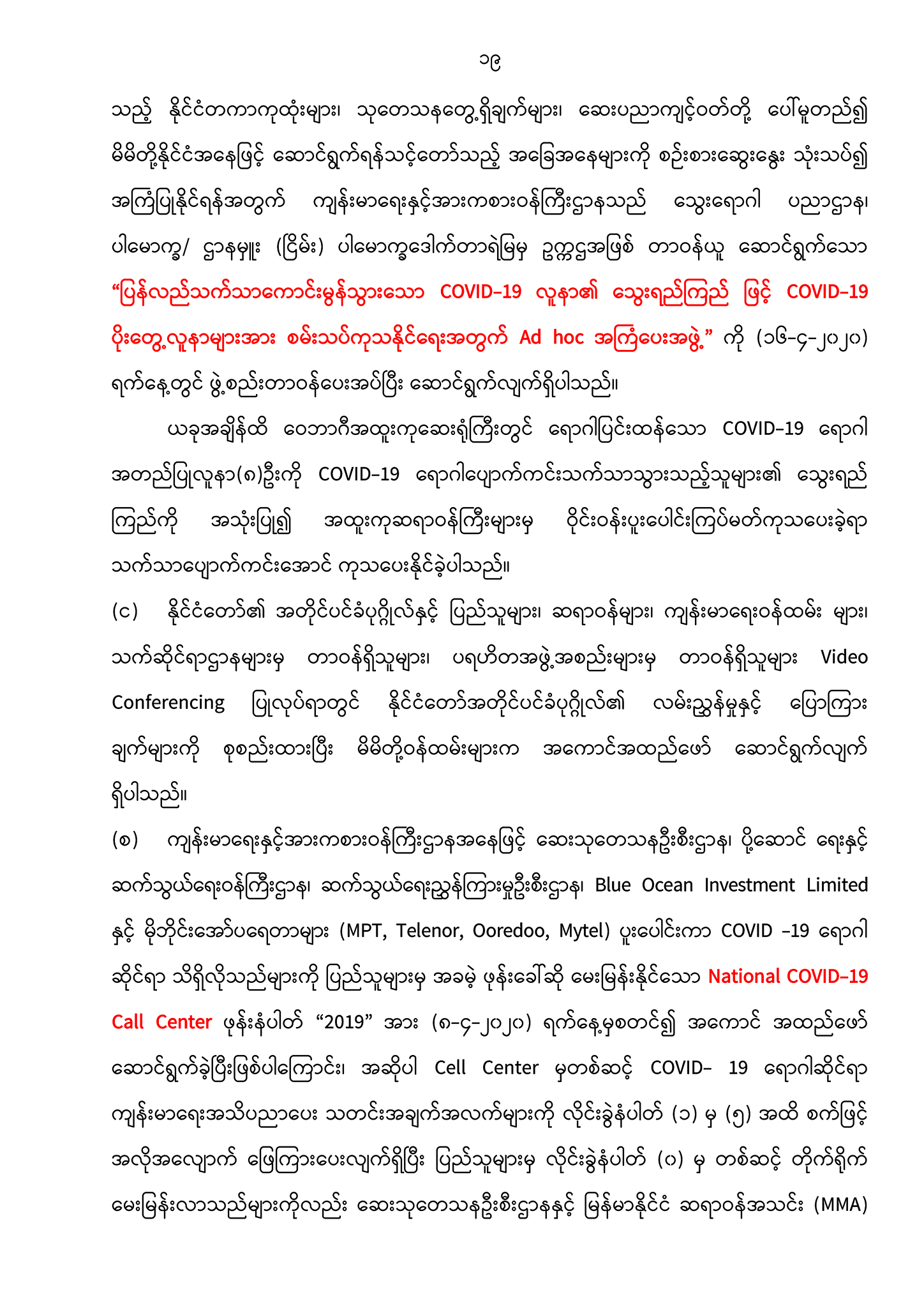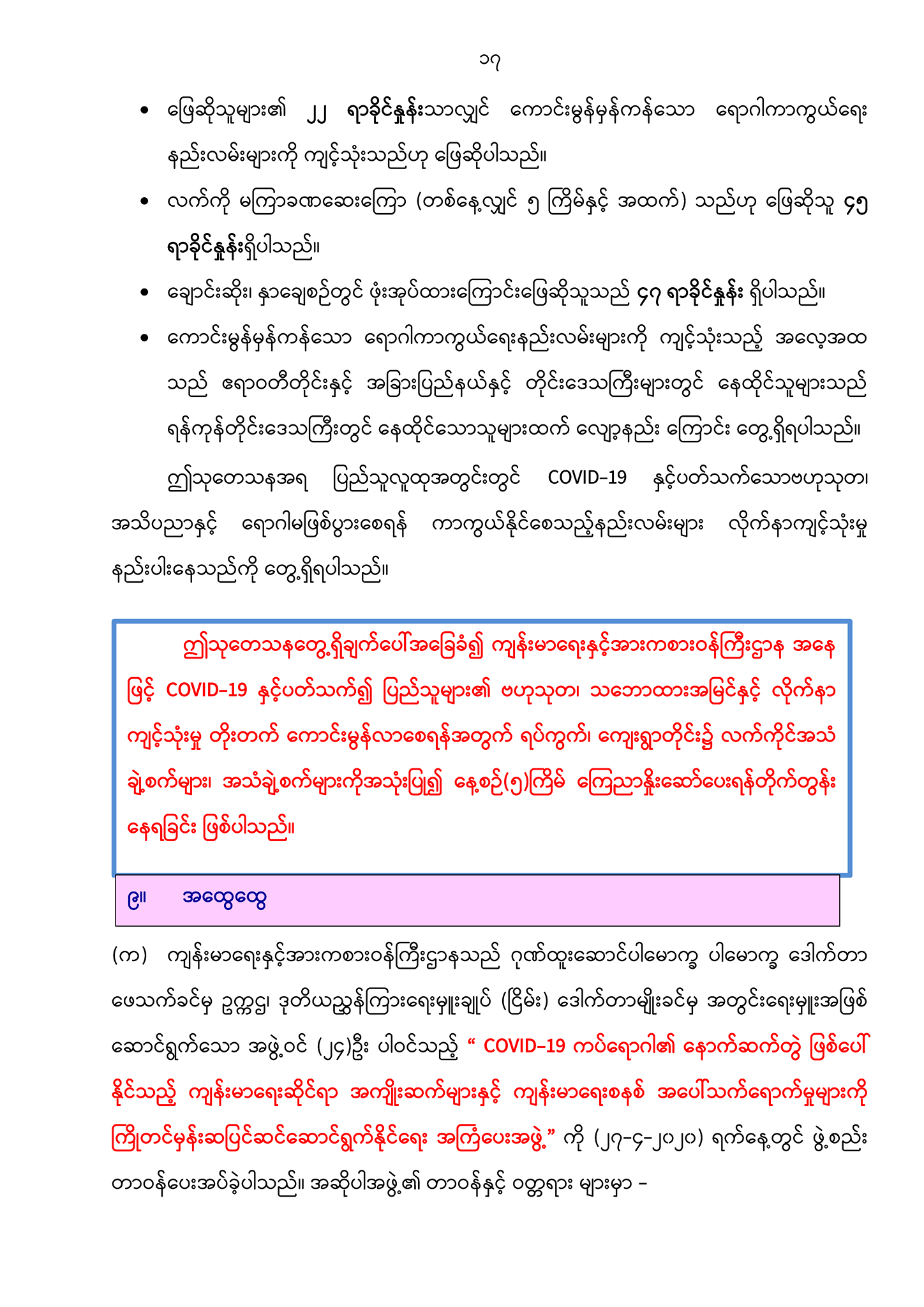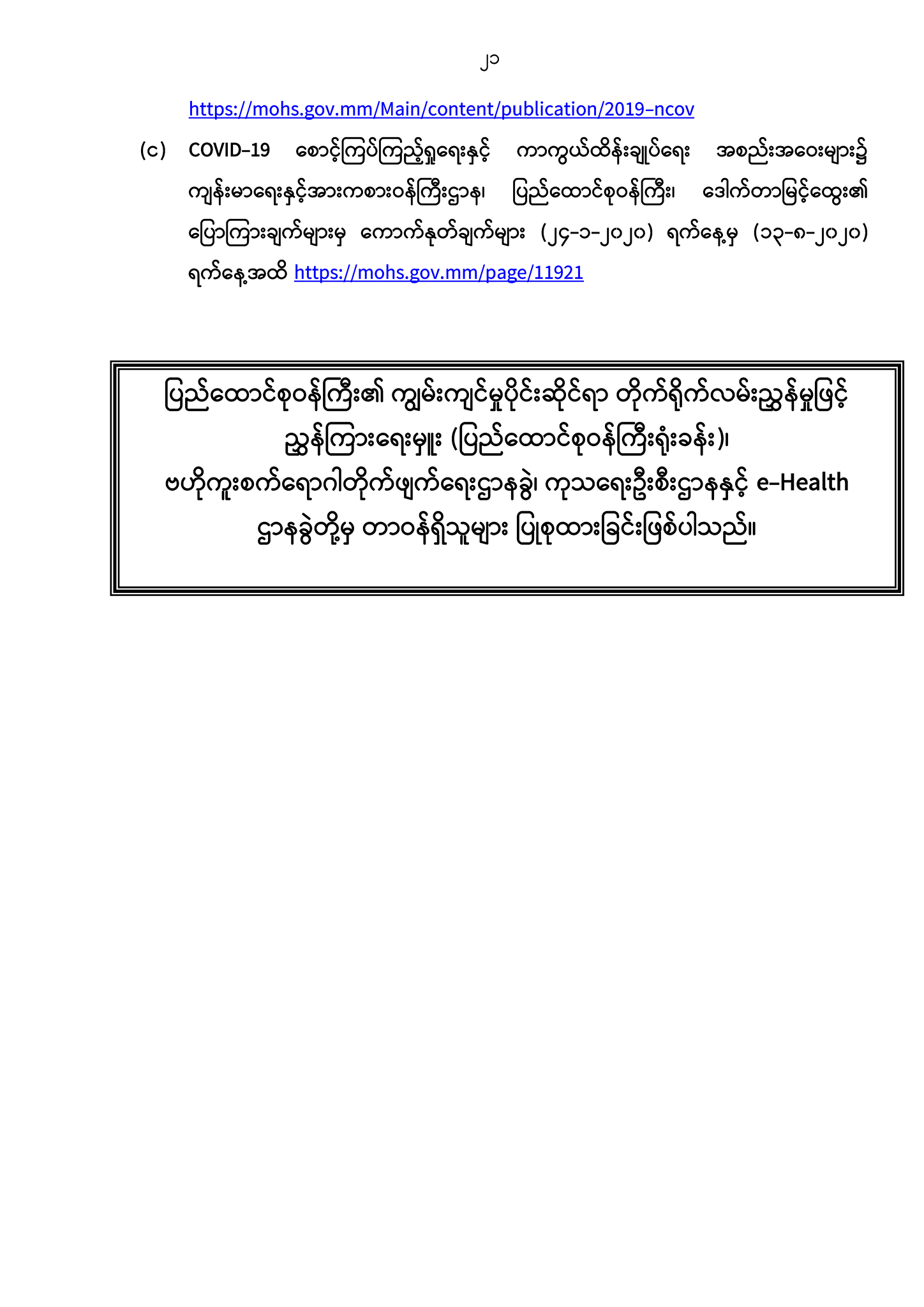 (ဂ) ပြည်သူများအတွက် ကိုရိုနာဗိုင်းရပ်စ် COVID-19 ဆိုင်ရာ ကျန်းမာရေးအသိပညာများ https://mohs.gov.mm/Main/content/publication/2019-ncov