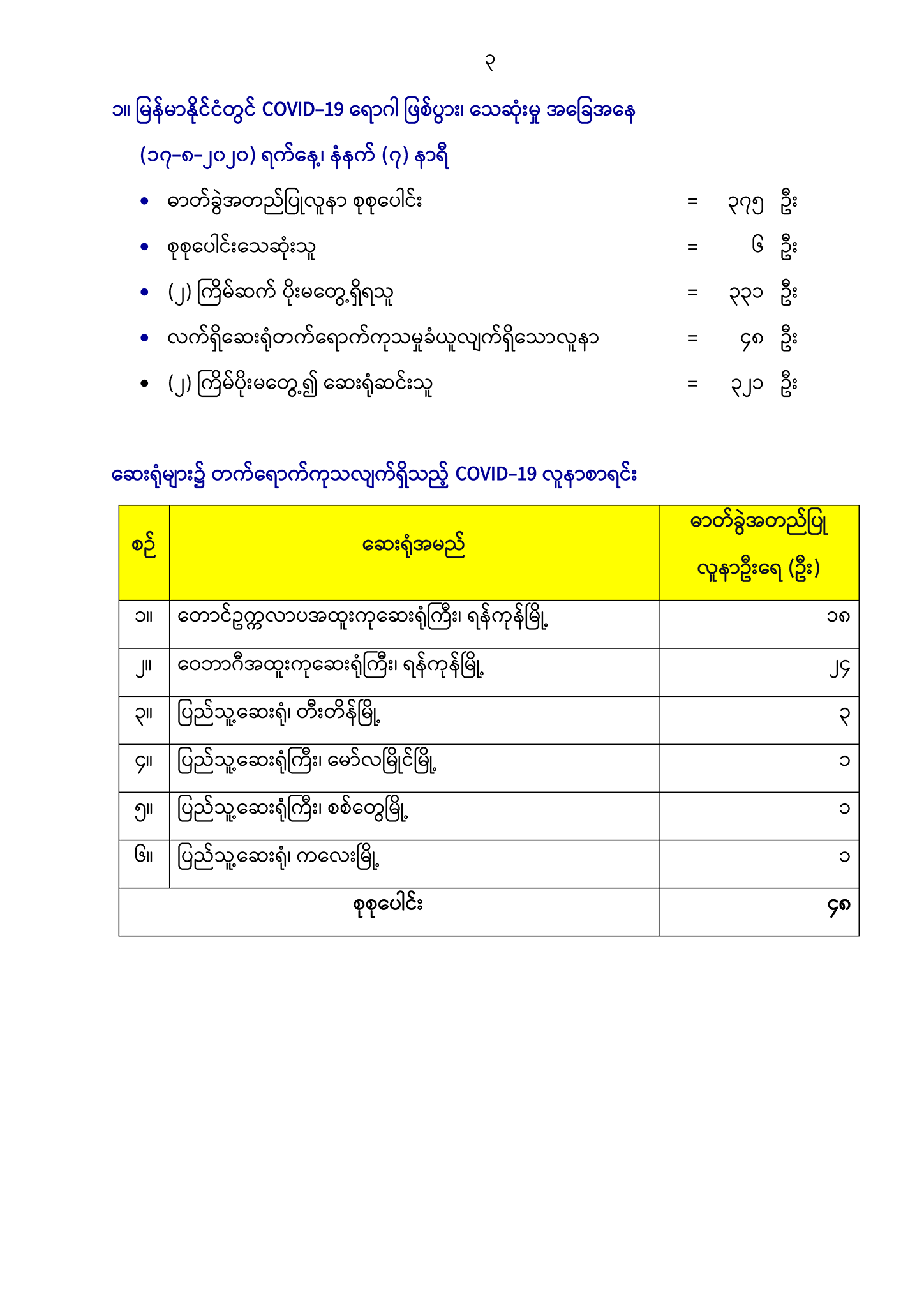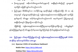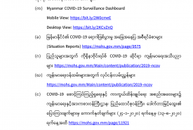 (ခ) မြန်မာနိုင်ငံ၏ COVID-19 ရောဂါဖြစ်ပွားမှု အခြေအနေပြ အစီရင်ခံစာများ (Situation Reports) https://mohs.gov.mm/page/9575