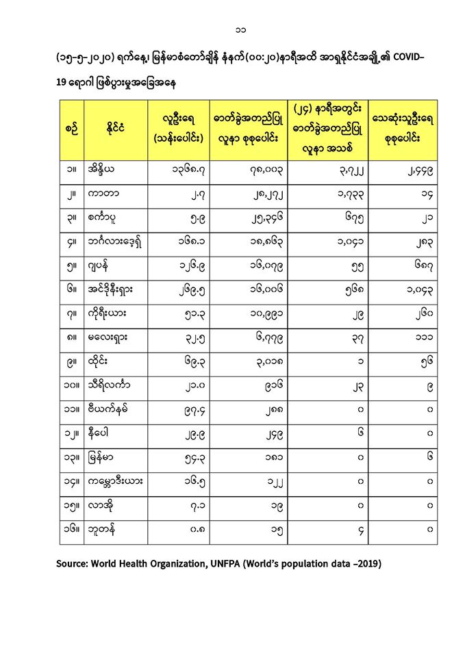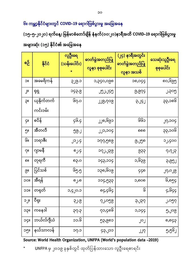 ၆။ ကမ္ဘာ့နိုင်ငံများတွင် COVID-19 ရောဂါဖြစ်ပွားမှုအခြေအနေ