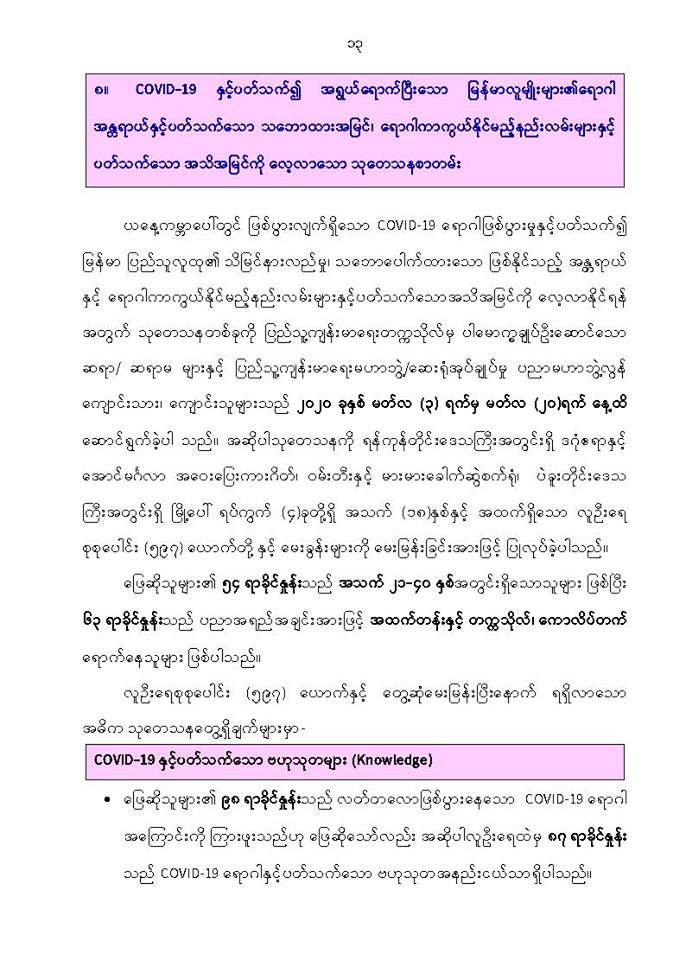 (ဂ) ပြည်သူများအတွက် ကိုရိုနာဗိုင်းရပ်စ် COVID-19 ဆိုင်ရာ ကျန်းမာရေးအသိပညာ များ https://mohs.gov.mm/Main/content/publication/2019-ncov