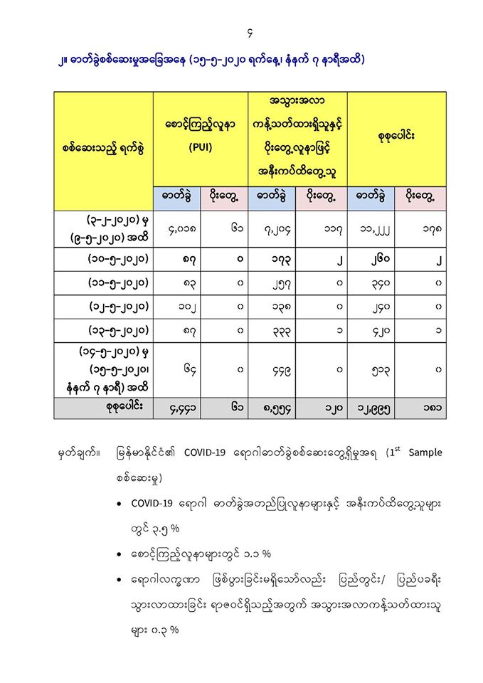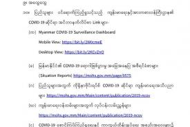 (ခ) မြန်မာနိုင်ငံ၏ COVID-19 ရောဂါဖြစ်ပွားမှု အခြေအနေပြ အစီရင်ခံစာများ (Situation Reports) https://mohs.gov.mm/page/9575