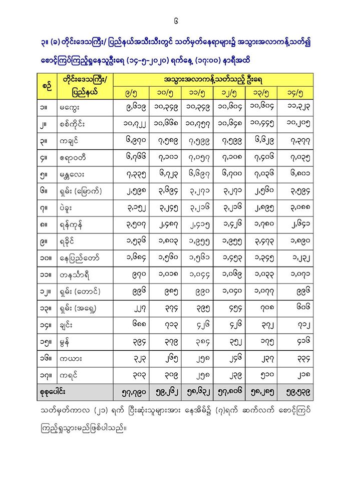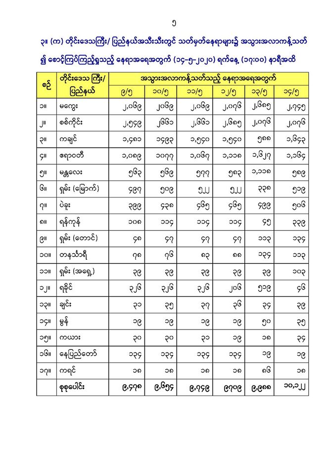 ၃။ (က) တိုင်းဒေသကြီး/ ပြည်နယ်အသီးသီးတွင် သတ်မှတ်နေရာများ၌ အသွားအလာ ကန့်သတ်၍ စောင့်ကြပ်ကြည့်ရှုသည့် နေရာအရေအတွက်