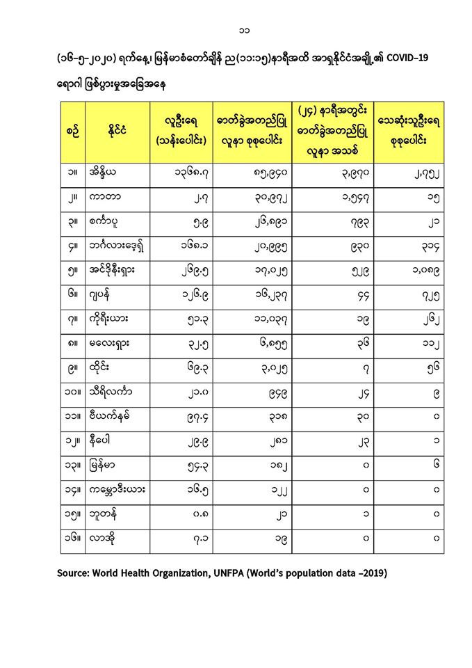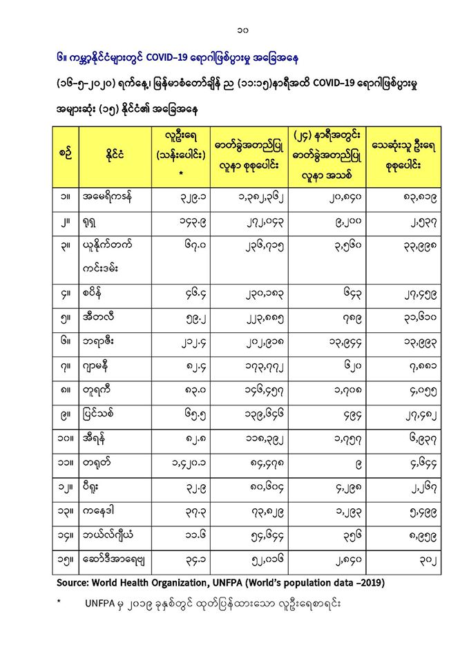 ၆။ ကမ္ဘာ့နိုင်ငံများတွင် COVID-19 ရောဂါ ဖြစ်ပွားမှုအခြေအနေ