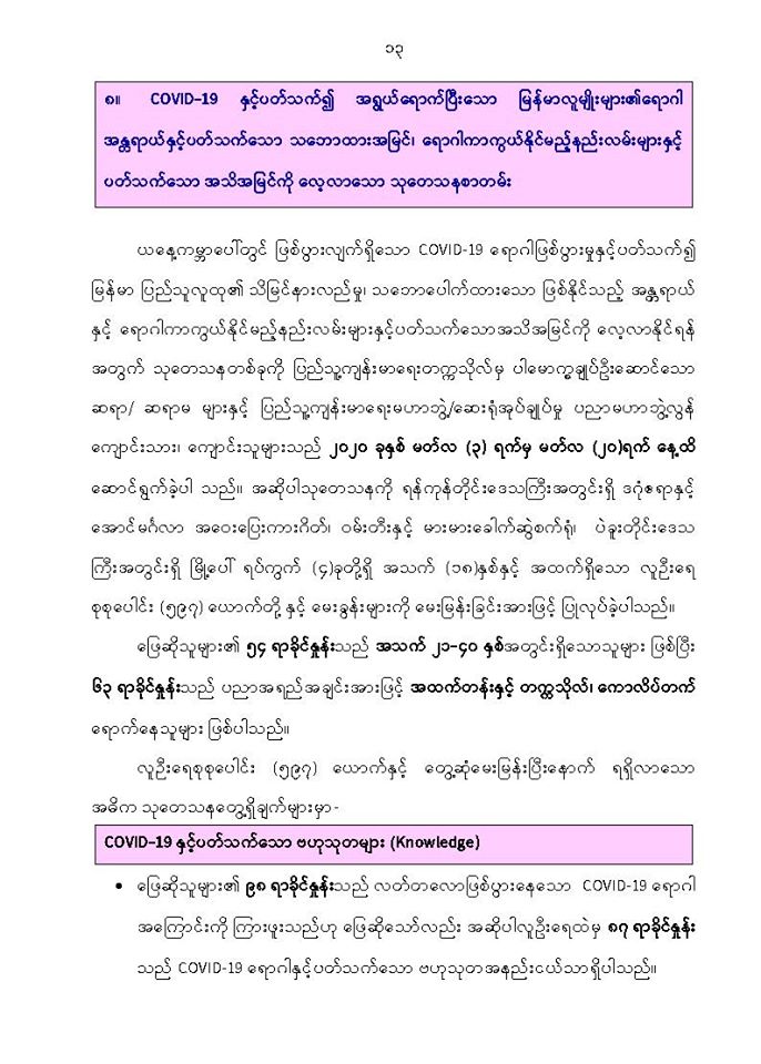 (ဂ) ပြည်သူများအတွက် ကိုရိုနာဗိုင်းရပ်စ် COVID-19 ဆိုင်ရာ ကျန်းမာရေးအသိပညာများ https://mohs.gov.mm/Main/content/publication/2019-ncov
