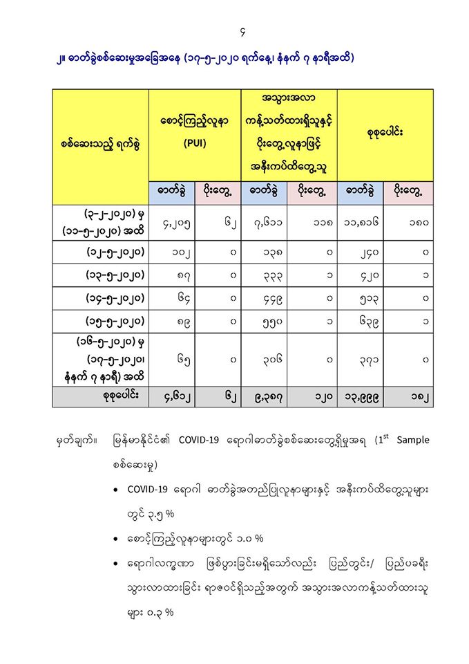 (ခ) မြန်မာနိုင်ငံ၏ COVID-19 ရောဂါဖြစ်ပွားမှု အခြေအနေပြ အစီရင်ခံစာများ (Situation Reports) https://mohs.gov.mm/page/9575