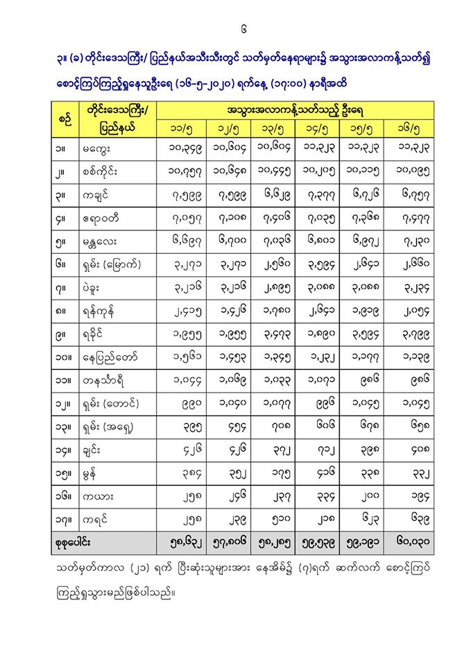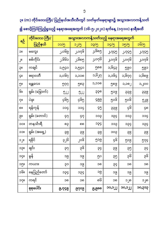 ၃။ (က) တိုင်းဒေသကြီး/ ပြည်နယ်အသီးသီးတွင် သတ်မှတ်နေရာများ၌ အသွားအလာ ကန့်သတ်၍ စောင့်ကြပ်ကြည့်ရှုသည့် နေရာအရေအတွက်