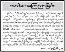 COVID-19 COVID-19 တိုင်းဒေသကြီးနှင့် ပြည်နယ်အသီးသီးရှိ ပြည်သူ့ဆေးရုံများ၊ တပ်မတော်ဆေးရုံများ၊ ကျန်းမာရေးဌာနများ၊ ကိုဗစ်စင်တာများနှင့် ပရဟိတအဖွဲ့များသို့ အောက်ဆီဂျင်အိုးများ၊ ရောဂါကာကွယ်ရေး အထောက်အကူပြု ပစ္စည်းများ ဖြန့်ဝေလှူဒါန်း COVID-19 03/08/21 ကိုဗစ် - ၁၉ ရောဂါ ကာကွယ်၊ ထိန်းချုပ်၊ ကုသရေး ဆေးနှင့်ဆေးပစ္စည်းများ နေ့စဉ်စစ်ဆေးထုတ်ပေးလျက်ရှိ COVID-19 03/08/21 ကမာရွတ်မြို့နယ်၌ အသက် ၆၅ နှစ်နှင့်အထက် သက်ကြီးများအား ကိုဗစ်-၁၉ ကာကွယ်ဆေး ဆက်လက်ထိုးနှံပေး COVID-19 03/08/21 ကိုဗစ်-၁၉ ရောဂါ ကာကွယ်၊ ထိန်းချုပ်၊ ကုသရေး အထောက်အကူပြုပစ္စည်းများနှင့် အောက်ဆီဂျင်အိုးများ ပေးအပ်လှူဒါန်းလျက်ရှိ COVID-19 03/08/21 COVID-19 ကာကွယ်ဆေး ဝယ်ယူရရှိရေး ရန်ပုံငွေ (COVID-19 Vaccination Fund) သို့ လှူဒါန်းနိုင်ရန် အသိပေးကြေညာချက် COVID-19 03/08/21 အသိပေးကြေညာခြင်း COVID-19 03/08/21 ကိုဗစ်-၁၉ ရောဂါ ကာကွယ်ကုသရေး ဆေးဝါးနှင့်ဆေးပစ္စည်းများပြည်ပမှ တင်သွင်းခြင်းဆိုင်ရာ လုပ်ငန်းညှိနှိုင်းအစည်းအဝေး ကျင်းပ COVID-19 03/08/21 ကိုဗစ် - ၁၉ ရောဂါ ကာကွယ်၊ ထိန်းချုပ်၊ ကုသရေးဆိုင်ရာ ဆဋ္ဌမအကြိမ် ညှိနှိုင်းအစည်းအဝေးပြုလုပ်၊ နိုင်ငံတော်စီမံအုပ်ချုပ်ရေးကောင်စီဥက္ကဋ္ဌ၊ ပြည်ထောင်စုသမ္မတ မြန်မာနိုင်ငံတော် အိမ်စောင့်အစိုးရ၊ နိုင်ငံတော်ဝန်ကြီးချုပ် ဗိုလ်ချုပ်မှူးကြီး မင်းအောင်လှိုင် တက်ရောက် COVID-19 03/08/21 ကျန်းမာရေးဝန်ကြီးဌာနမှ ပြည်သူသို့ အသိပေးပန်ကြားချက် COVID-19 02/08/21 ကိုဗစ်-၁၉ ကာကွယ်၊ ထိန်းချုပ်၊ ကုသရေးဆိုင်ရာဆေးဝါးနှင့် ဆက်စပ်ပစ္စည်းများအား အများပြည်သူ ရုံးပိတ်ရက်များတွင်လည်း တင်သွင်းနိုင်ရေးဆောင်ရွက်ပေးလျက်ရှိ COVID-19 02/08/21 Pagination First page « First Previous page ‹ Previous … စာမျက်နှာ 40 စာမျက်နှာ 41 လက်ရှိစာမျက်နှာ 42 စာမျက်နှာ 43 စာမျက်နှာ 44 … Next page Next › Last page Last » အဖတ်များဆုံး သတင်း ပဲခူးတိုင်းဒေသကြီး၊ မကွေးတိုင်းဒေသကြီး၊ ဧရာဝတီတိုင်းဒေသကြီး၊ ကယားပြည်နယ်၊ ကရင်ပြည်နယ်နှင့် ရှမ်းပြည်နယ်တို့တွင် ညအပူချိန်များ အနည်းငယ် လျော့နည်းနိုင် မိုးလေဝသ 29/Dec/2025 သီရိလင်္ကာနိုင်ငံ၌ ယခုနှစ်အတွင်း နိုင်ငံခြားခရီးသွား ၂ ဒသမ ၃၃ သန်းကျော် ဝင်ရောက်မှုရှိ နိုင်ငံတကာ 29/Dec/2025 နိုင်ဂျီးရီးယားက တူနီးရှားကို အနိုင်ယူပြီး အာဖရိကနိုင်ငံများဖလား ၁၆ သင်းအဆင့်တက် အားကစား 29/Dec/2025 ဩစတြေးလျအိုးပင်းပြိုင်ပွဲကို ဒဏ်ရာကြောင့် ဒရေပါ လွဲချော်ဖွယ်ရှိ အားကစား 29/Dec/2025 လာအိုနိုင်ငံတွင် ယခုနှစ် ၁၁ လအတွင်း ယာဉ်မတော်တဆမှုများကြောင့် ၇၈၂ ဦး သေဆုံး နိုင်ငံတကာ 29/Dec/2025