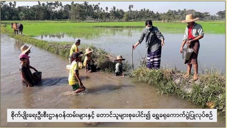 ၁။ စပါးပင်ငယ်စဉ်တွင် ခရုအန္တရာယ်ကို သတိပြု ကင်းထောက်စစ်ဆေးပါ။