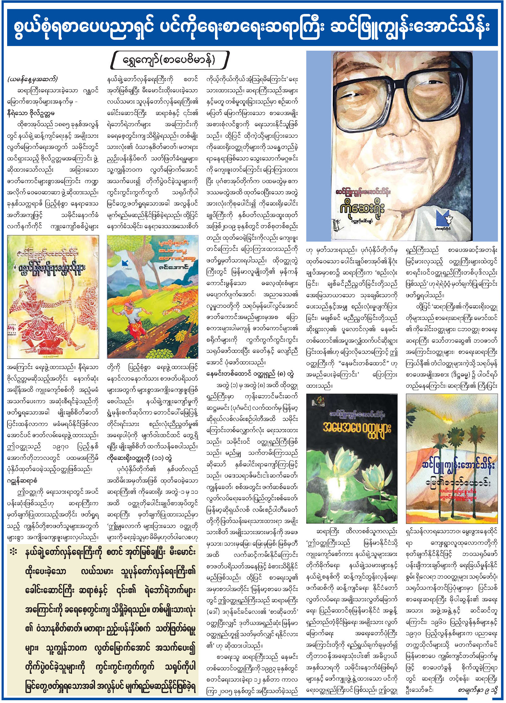 စွယ်စုံရစာပေပညာရှင် ပင်ကိုရေးစာရေးဆရာကြီး ဆင်ဖြူကျွန်း အောင်သိန်း