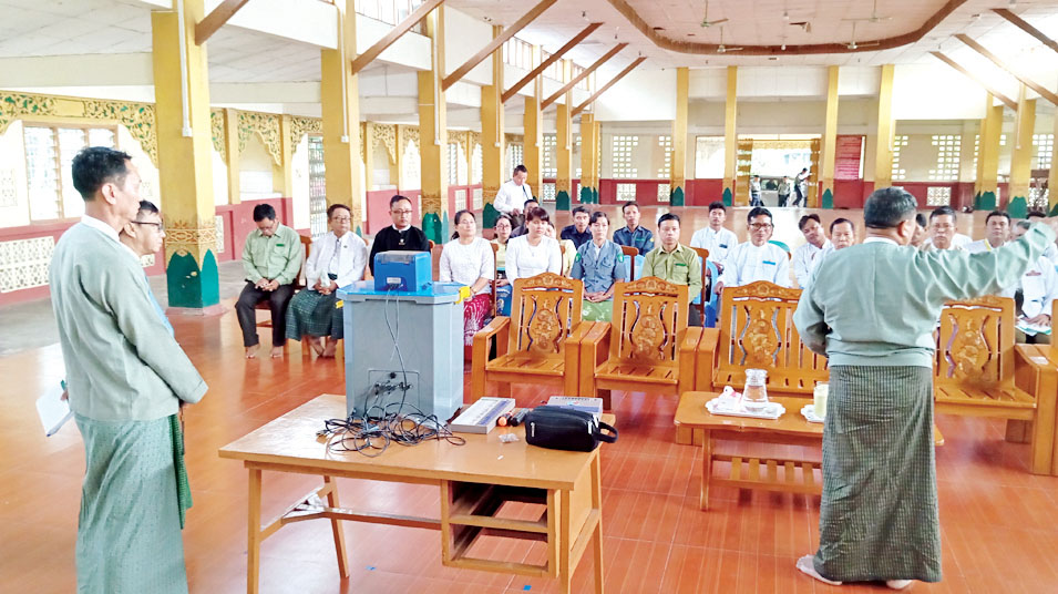 အခမ်းအနားတွင် ပြည်ထောင်စုရွေးကောက်ပွဲကော်မရှင်အဖွဲ့ဝင် ဦးတင်ဆွေဝင်းက မဲပေးစက်များ စနစ်တကျ ကိုင်တွယ်အသုံးပြုနိုင်စေရေး ကြိုတင်ဆောင်ရွက်ထားရန်၊ ဒုတိယအကြိမ် ထုတ်ပြန် ကြေညာမည့် မဲစာရင်းများ ပြည့်စုံမှန်ကန်စေရေး၊ ရွေးကောက်ပွဲဆိုင်ရာကိစ္စရပ်များနှင့် တက္ကသိုလ်၊ ဒီဂရီကောလိပ်များသို့ တက်ရောက်ကြမည့် ကျောင်းသား ကျောင်းသူများ ကြိုတင်ဆန္ဒမဲပေးနိုင်ရေး ဆောင်ရွက်ထားရှိမှုနှင့် မဲပေးစက် ထားရှိမည့်နေရာကို ကြည့်ရှုစစ်ဆေးပြီး တာဝန်ရှိသူများအား လိုအပ်သည်များ လမ်းညွှန်မှာကြားခဲ့ကြောင်း သိရသည်။