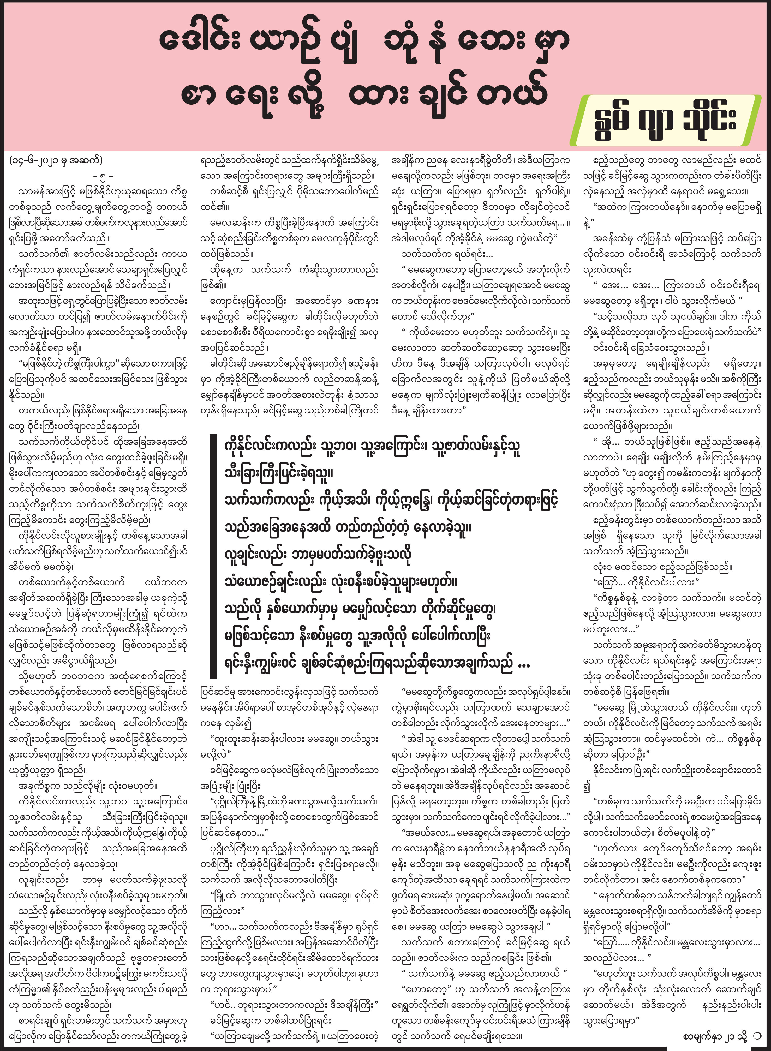 ဒေါင်းယဉ်ပျံ ဘုံနဘေးမှာ စာရေးလို့ထားချင်တယ်