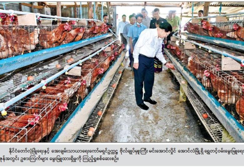 ထို့နောက် နိုင်ငံတော်လုံခြုံရေးနှင့် အေးချမ်းသာယာရေး ကော်မရှင်ဥက္ကဋ္ဌနှင့် အဖွဲ့ဝင်များသည် အောင်လံမြို့ရှိ ရွှေတင့်ဝမ်း မွေးမြူရေးဇုန်သို့ ရောက်ရှိကြပြီး မွေးမြူရေးဇုန်အတွင်း ဥစားကြက်များ မွေးမြူထားရှိမှုကို လိုက်လံကြည့်ရှုစစ်ဆေးရာ တာဝန်ရှိသူများက ရှင်းလင်းတင်ပြကြသည်။ ရှင်းလင်းတင်ပြမှုများအပေါ် နိုင်ငံတော်လုံခြုံရေးနှင့် အေးချမ်းသာယာရေး ကော်မရှင်ဥက္ကဋ္ဌက မွေးမြူရေးဇုန်အတွင်း အရိပ်ရ လေကာပင်များ စိုက်ပျိုးသွားရန်နှင့် မွေးမြူရေးလုပ်ငန်းများအား စနစ်တကျဖြင့် ဆောင်ရွက်သွားရန်၊ သန့်ရှင်းမှုများရှိစေရေး စနစ်တကျ ဆောင်ရွက်သွားရန် မှာကြားသည်။ ယင်းနောက် နိုင်ငံတော်လုံခြုံရေးနှင့် အေးချမ်းသာယာရေး ကော်မရှင်ဥက္ကဋ္ဌနှင့် အဖွဲ့ဝင်များသည် အောင်လံမြို့ အဝေးပြေး ယာဉ်ရပ်နားစခန်း အဆင့်မြှင့်တင် တည်ဆောက်ထားရှိမှု အခြေအနေများကို ကြည့်ရှုစစ်ဆေးပြီး တာဝန်ရှိသူများ၏ တင်ပြချက်များ အပေါ်ယာဉ်ရပ် နားစခန်းအတွင်း ယာဉ်ရပ်နားမှုများ စနစ်တကျ ဖြစ်စေရေးဆောင်ရွက်ရန်၊ အရိပ်ရ လေကာပင်များအား စနစ်တကျ စိုက်ပျိုးသွာရန်၊ ယာဉ်ရပ်နားစခန်း အနီးပတ်ဝန်းကျင်၌ ပတ်ဝန်းကျင် စိမ်းလန်းစိုပြည်မှုကို အထောက်အကူပြုစေမည့် သစ်တောငယ်များ စိုက်ပျိုး ဆောင်ရွက်သွားရန်နှင့် အခြားလိုအပ်သည်များ လမ်းညွှန်မှာကြားခဲ့ကြောင်း သိရသည်။
