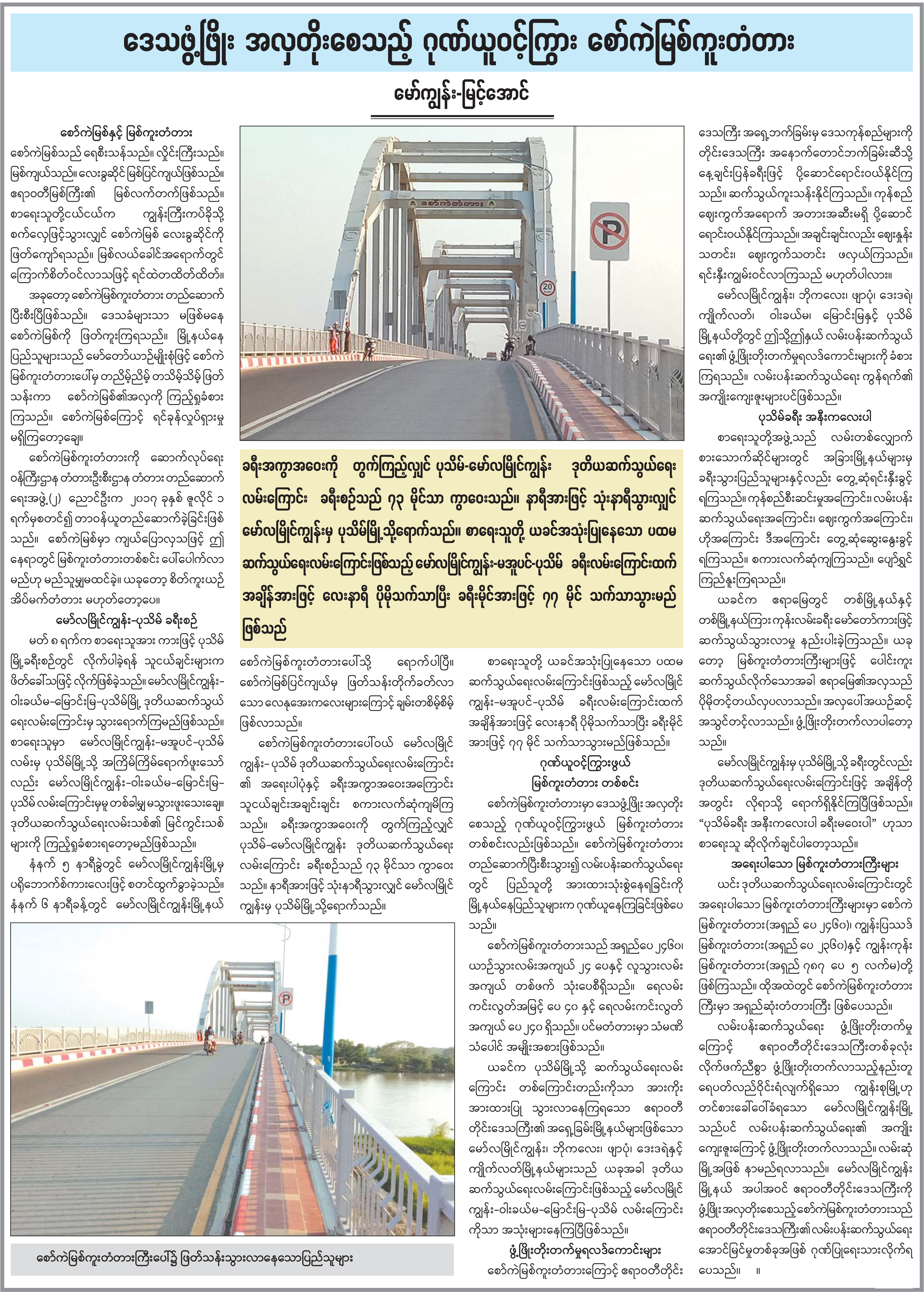 ဒေသဖွံ့ဖြိုး အလှတိုးစေသည့် ဂုဏ်ယူဝင့်ကြွား စော်ကဲမြစ်ကူးတံတား