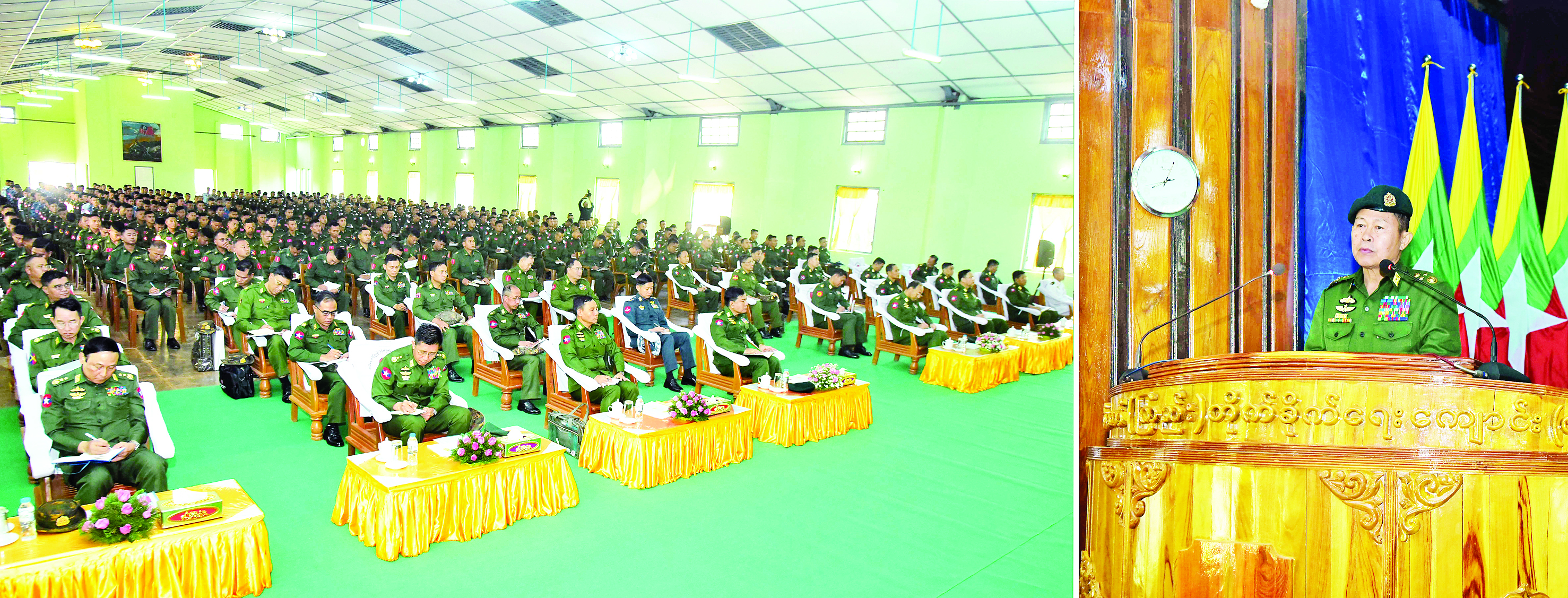 လက်ရှိ တည်ဆောက်ထား သည့် ရေပက်မဝင်သော စည်းလုံး မှုကို ဆက်လက်ခိုင်မြဲအောင် ထိန်းသိမ်းသွားရန် လိုကြောင်း၊ တာဝန်ရှိသူများအနေဖြင့် ညီညွတ် မျှတသော အုပ်ချုပ်မှုဖြင့် မိမိ လက်အောက်ငယ်သားများကို ကျောသားရင်သား မခွဲခြားဘဲ စီမံအုပ်ချုပ်ရန် လိုကြောင်း၊ ရပိုင်ခွင့်နှင့် သက်သာချောင်ချိမှု များ မှန်မှန်ကန်ကန်မျှတစွာ ရရှိ အောင် တာဝန်ရှိသူများက စိတ်ဝင်တစား လုပ်ဆောင်နေရန် လိုကြောင်း၊ မိမိကွပ်ကဲရသော တပ်အဖွဲ့အစည်းကို ကျစ်လျစ် ခိုင်မာအောင် တည်ဆောက်၍ ထိတွေ့ဆက်ဆံရသော မိဘ ပြည်သူများအပေါ် ဆွေမျိုးမိဘ သဖွယ် ဆက်ဆံခြင်းဖြင့် နိုင်ငံ တော်ကာကွယ်ရေး မဟာဗျူဟာ ဖြစ်သည့် ပြည်သူ့စစ်မဟာဗျူဟာ ကို အောင်မြင်စွာဖော်ဆောင်နိုင် မည်ဖြစ်ကြောင်း၊ ထို့ပြင် မိဘ ပြည်သူများကို နှိပ်စက်သတ်ဖြတ် အနိုင်ကျင့်နေသော အကြမ်းဖက် အဖွဲ့များ၏ ဘေးရန်ကို ကာကွယ် ပေးနိုင်ခြင်းဖြင့် ပြည်သူလူထု၏ ယုံကြည်ကိုးစားမှုကို ရရှိနိုင်မည် ဖြစ်ကြောင်း ပြောကြားပြီး တက် ရောက်လာကြသည့် သင်တန်း သားများ၊ ဗိုလ်လောင်းများနှင့် အရာရှိ၊ စစ်သည်၊ မိသားစုများ၏ တစ်ဦးချင်းတင်ပြချက်များအပေါ် တာဝန်ရှိသူများနှင့် ပေါင်းစပ် ညှိနှိုင်းဆောင်ရွက်ပေးသည်။