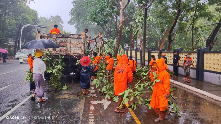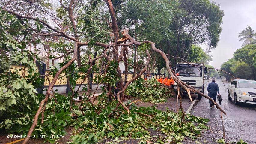 ရန်ကုန်တိုင်းဒေသကြီး၊ ဒဂုံမြို့နယ်၊ ယောမင်းကြီးရပ်ကွက်၊ ဦးဝိစာရလမ်းတွင် ယနေ့နံနက် ၅ နာရီခွဲက လေပြင်းတိုက်ခတ်မှုကြောင့် လုံးပတ်၊ အရှည်(၃ ပေ၊ ပေ ၄၀)ခန့်ရှိ စိန်ပန်းပင်သည် လမ်းပေါ်သို့ ပြိုလဲကျခဲ့ပြီး ယာဉ်နှင့် လူထိခိုက်မှုမရှိကြောင်း၊ လျှပ်စစ်ကြိုးနှင့် ဆက်သွယ်ရေးကြိုးများ ပြတ်တောက်ခဲ့ပြီး လမ်းတစ်ခြမ်း ခေတ္တပိတ်ဆို့ ရှင်းလင်းခဲ့ကြကြောင်း သိရသည်။