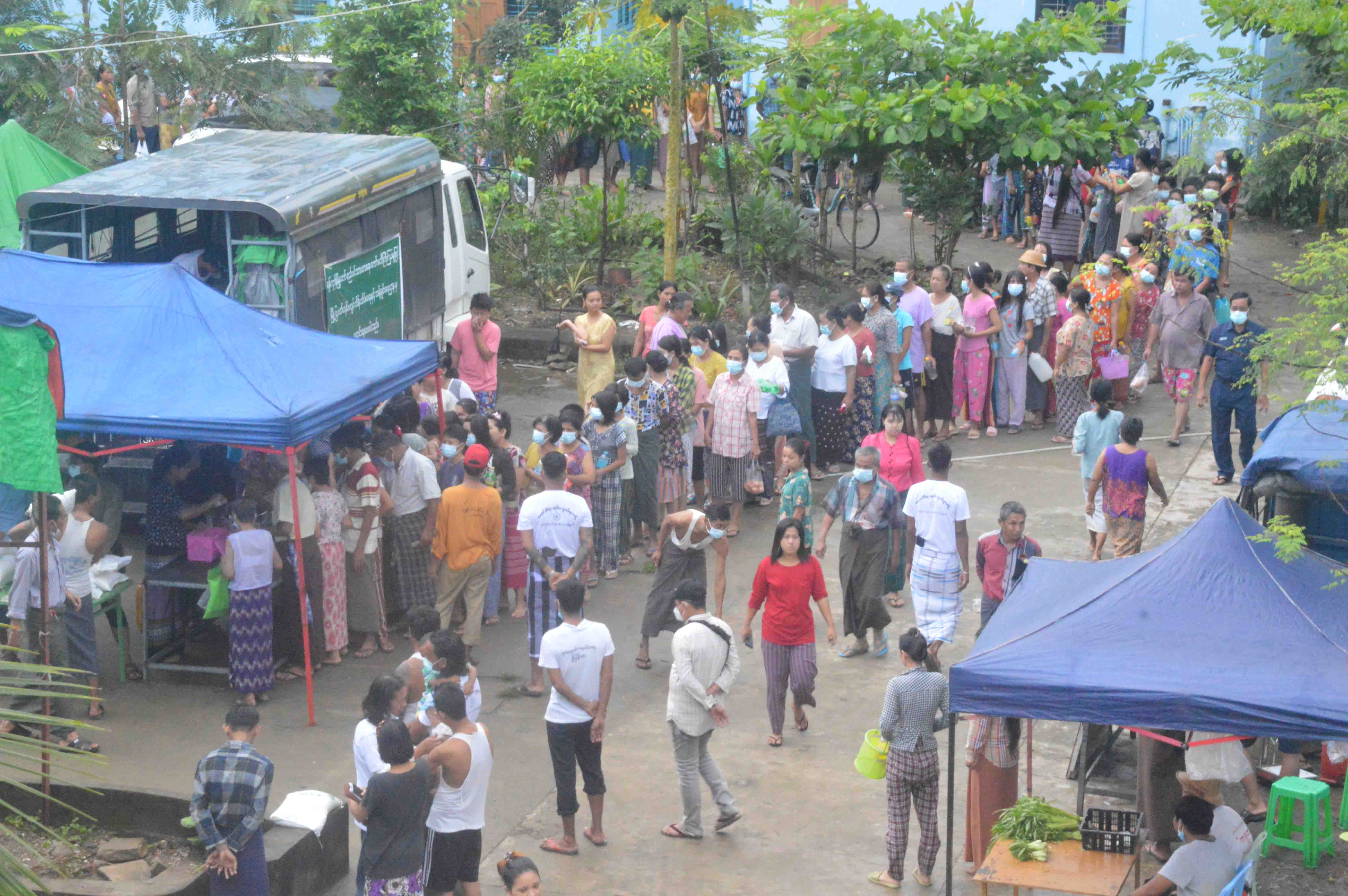 အလားတူ ရန်ကုန်မြို့တော်စည်ပင်သာယာရေး ကော်မတီအနေဖြင့် မင်္ဂလာတောင်ညွန့် မြို့နယ်၊ မအူကုန်း စည်ပင်အိမ်ရာဝင်း၊ လသာမြို့နယ် (၄) ရပ်ကွက်၊ ဗိုလ်တထောင်မြို့နယ် လမ်း ၅၀ အိမ်ရာနှင့် အမှတ် (၆၅၆) ပင်မလျှပ်စစ်တပ် အိမ်ထောင်သည်လိုင်းတို့တွင်လည်း Mobile Market စနစ်ဖြင့် ဈေးရောင်းချပေးခဲ့ကြောင်းသိရသည်။