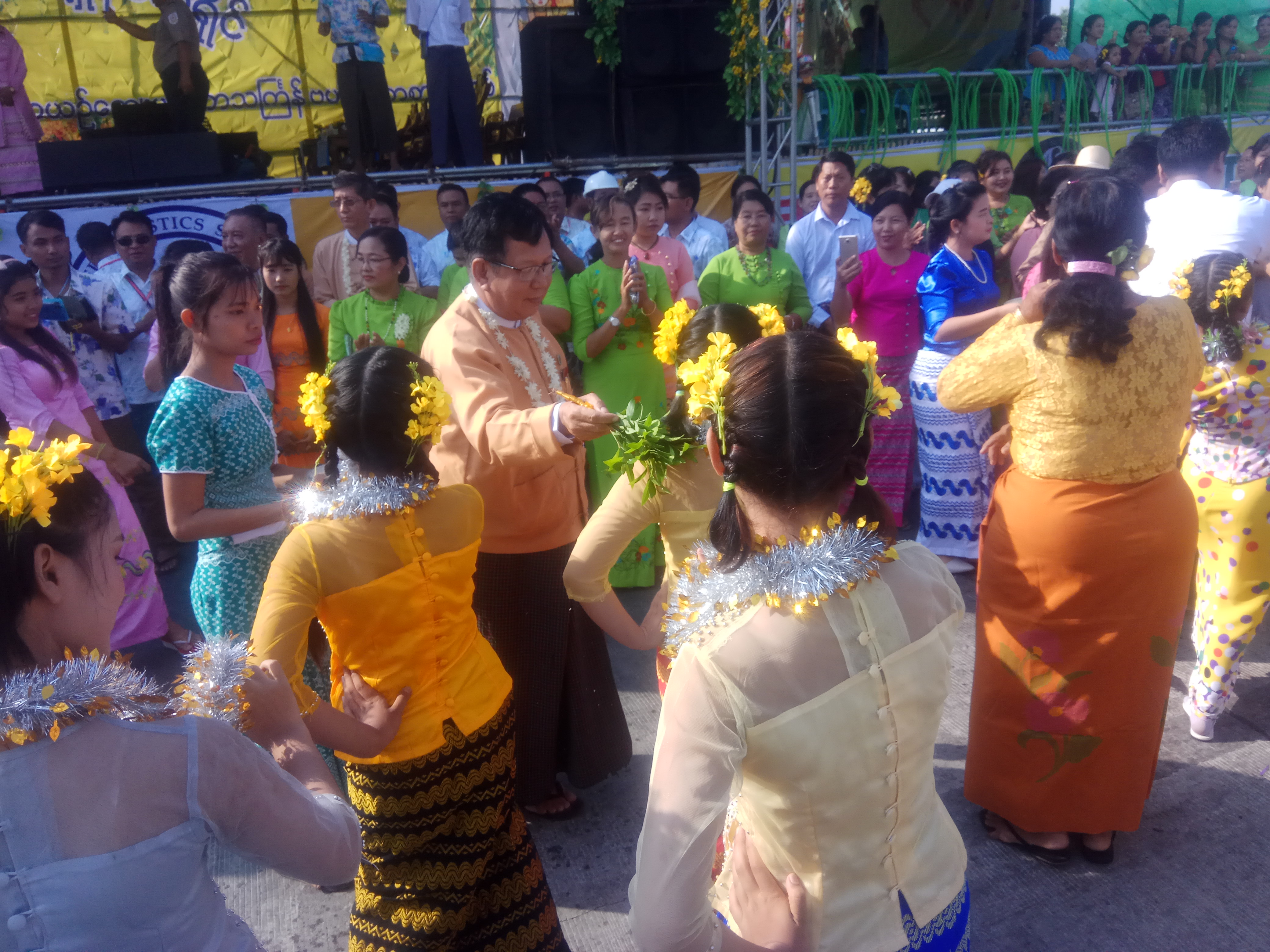 ရန်ကုန်တိုင်းဒေသကြီး ရန်ကုန်အရှေ့ပိုင်းခရိုင် ဒဂုံမြို့သစ်(မြောက်ပိုင်း)မြို့နယ် မြန်မာ့ရိုးရာယဉ်ကျေးမှု မဟာသင်္ကြန် ဗဟိုရေကစားမဏ္ဍပ်နှင့် ဖျော်ဖြေရေးမဏ္ဍပ်ဖွင့်ပွဲ အခမ်းအနားကို ယနေ့နံနက် ၈ နာရီက ပင်လုံလမ်းမကြီးတွင် ကျင်းပရာ လွှတ်တော်ကိုယ်စားများနှင့် တာဝန်ရှိသူများက ဖဲကြိုးဖြတ် ဖွင့်လှစ်ပေးခဲ့သည်။