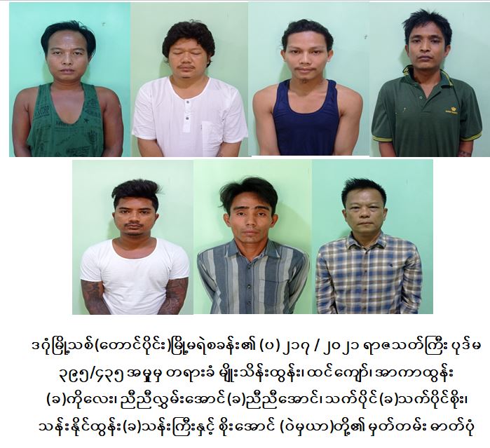 အဆိုပါ ပြစ်ဒဏ်ချမှတ်ခံရသူများအနက် အောင်ကိုဦး၊ ကျော်ကိုထက်၊ ထင်ကျော်(ခ)ဖက်တီး၊ ငထွန်း၊ ဟိန်းကို၊ ရဲကို၊ မတင်ထွေးရီ၊ ကိုဇင်(ခ)ကြွက်ကုလား၊ ဦးဘို၊ ကျားဘန်းနူး၊ မွတ်နား(ခ)မုနား၊ ငတေ၊ အရှည်ကြီး၊ ဆီနီဂေါ၊ ဝင်းနိုင်၊ နေလင်းဦး၊ အသေးလေး၊ ဝေယံ၊ မဲကြီး၊ သူရအောင်၊ ထိန်လင်းအောင်၊ ကုလား၊ လွင်မိုးဦး၊ နိုင်လေး(ခ)နိုင်လင်းနှင့် ဒေါ်လေးလေးတို့သည် ထွက်ပြေးလွတ်မြောက်နေသဖြင့် ၎င်းတို့နှင့်စပ်လျဉ်း၍ ရာဇဝတ် ကျင့်ထုံး ဥပဒေပုဒ်မ-၈၇/ ၈၈ အရ ဖမ်းဝရမ်းထုတ်ဆင့်ရန် အမိန့်ချမှတ်ခဲ့ကြောင်း သတင်းရရှိသည်။