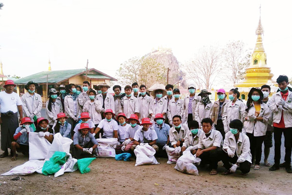 ရန်ကုန်မြို့ ဒဂုံတက္ကသိုလ် ဘူမိဗေဒဌာနမှ ကထိက ဒေါက်တာသန့်ဇင်နှင့် ဒေါ်အေးအေးမင်း (သရုပ်ပြ) တို့ဦးစီးသည့် ဒုတိယနှစ် ဘူမိဗေဒ အထူးပြုကျောင်းသား/ ကျောင်းသူ (၃၆) ဦးတို့နှင့် တောင်ကလပ် ငြိမ်းချမ်းရေးအမှိုက် ကောက်အဖွဲ့မှ ဥက္ကဋ္ဌ ဦးပြည့်ဖြိုးအောင် ပါအဖွဲ့ဝင် (၁၀) ဦး ပူးပေါင်း၍ စုစုပေါင်း (၄၆) ဦးတို့သည် တောင်ကလပ်ဝန်းကျင် သန့်ရှင်းသာယာ လှပစေရေးနှင့် ရပ်နီး/ရပ်ဝေး ခရီးသွားပြည်သူများ စိတ်အေးချမ်းသာယာစွာ အပန်းဖြေ အနားယူနိုင်ရေးအတွက် ယနေ့ နံနက် (၇) နာရီမှစတင်ကာ ပုပ္ပား-တောင်ကလပ်ကားလမ်း ရွှေဝန်းခြံမှ တောင်ကလပ်အခြေ အထိလည်းကောင်း၊ ရွှေဂူချောင် ကျောင်းတိုက်ဝန်းကျင်နှင့် ပတ္တမြားစောင်းတန်း၊ ကုမာရ ရာမတိုက် ကျောင်းဝန်းကျင်တို့တွင်လည်းကောင်း၊ စွန်ပစ် အမှိုက်များနှင့် ပလတ်စတစ်စများကို လိုက်လံကောက်ယူသိမ်းဆည်းကြပြီး အဖွဲ့ပိုင်အမှိုက်ကားဖြင့် ဗျတ္တပန်းဆက်လမ်းအနီး သတ်မှတ်နေရာတွင် သွားရောက်စွန့်ပစ်ခြင်းများကို နံနက် (၁၁) နာရီအထိ အတူတကွ ပူးပေါင်းဆောင်ရွက်ခဲ့ကြကြောင်း သိရသည်။